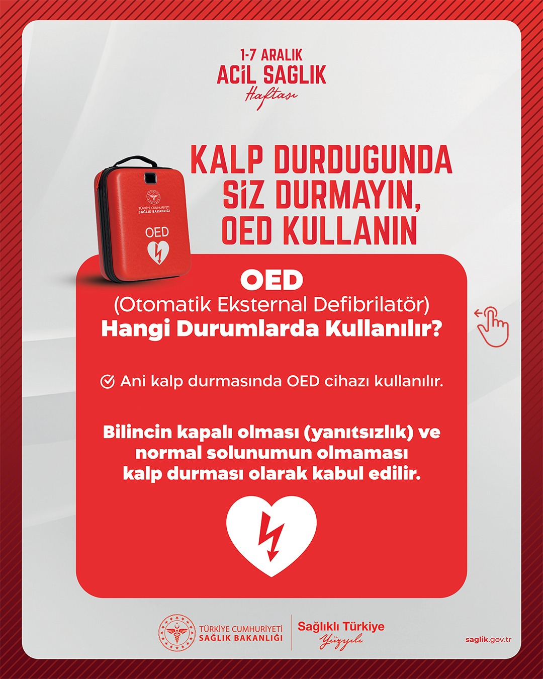 Bu çağrı ile hem vatandaşların OED konusunda bilinçlenmesi hem de acil durumlarda hızlı ve doğru müdahalenin sağlanması hedefleniyor.