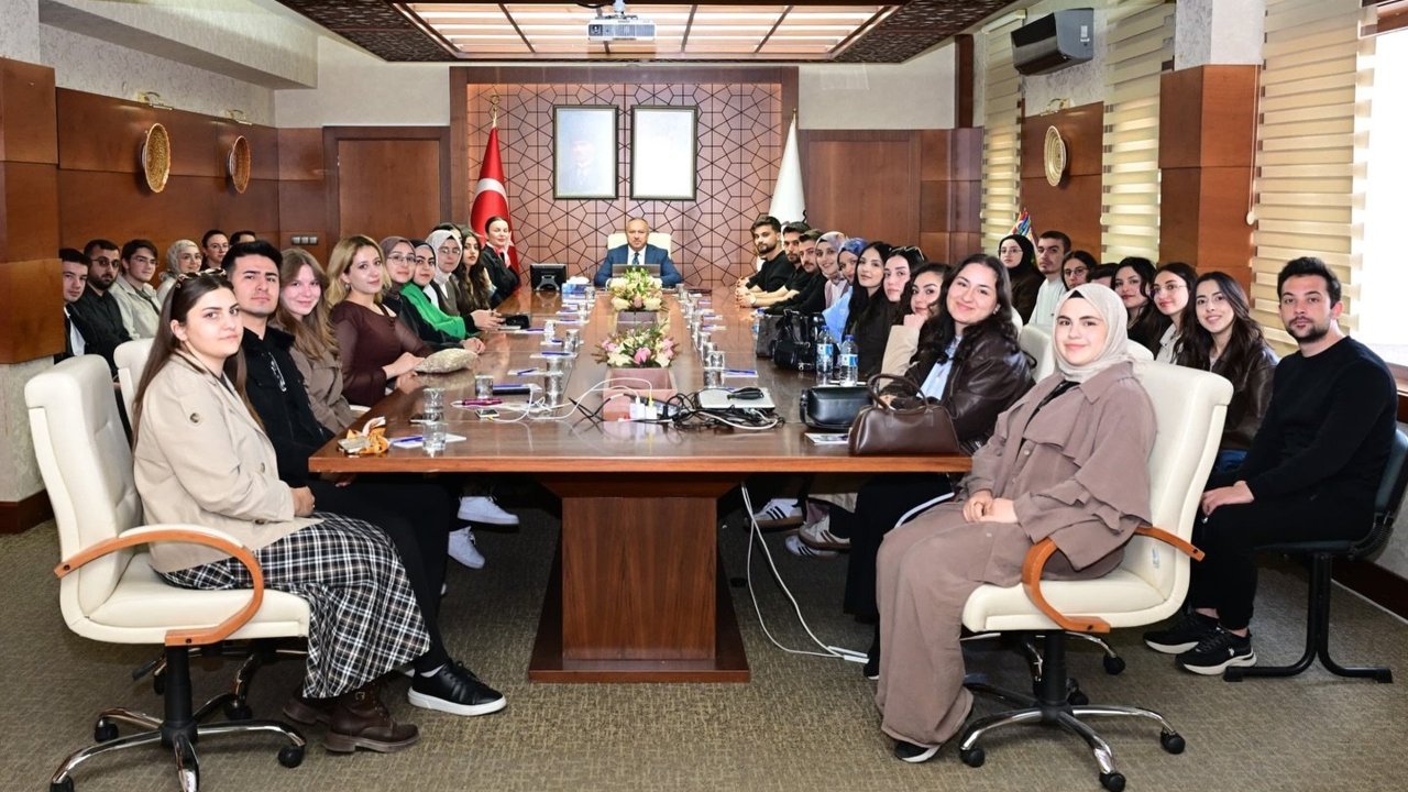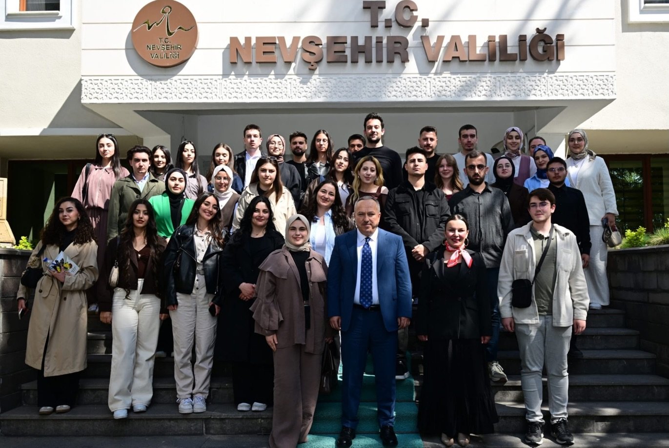 Nevşehir Valisi Ali Fidan, Erciyes Üniversitesi İktisadi ve İdari Bilimler Fakültesi Siyaset Bilimi ve Kamu Yönetimi Bölümü öğretim görevlisi Hatun Korkmaz eşliğinde 3. ve 4. sınıf öğrencilerini Valilik Toplantı Salonu’nda kabul etti.