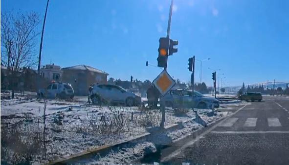 Edinilen bilgilere göre, kavşak içerisinde seyir halinde olan bir otomobilin sürücüsü, henüz belirlenemeyen bir nedenle direksiyon hakimiyetini kaybetti. Kontrolden çıkan araç, kavşak içinde refüje çıkarak durabildi.