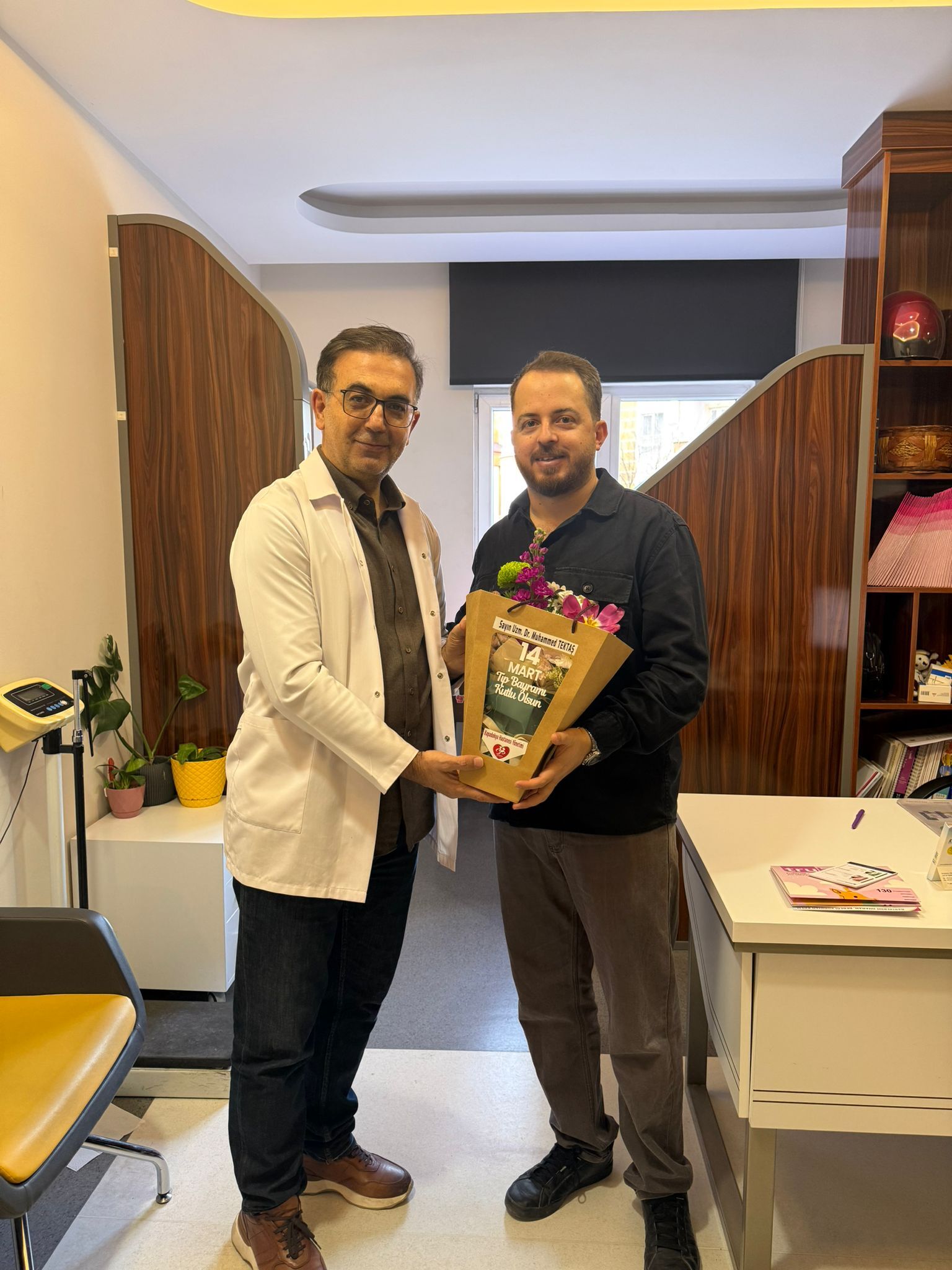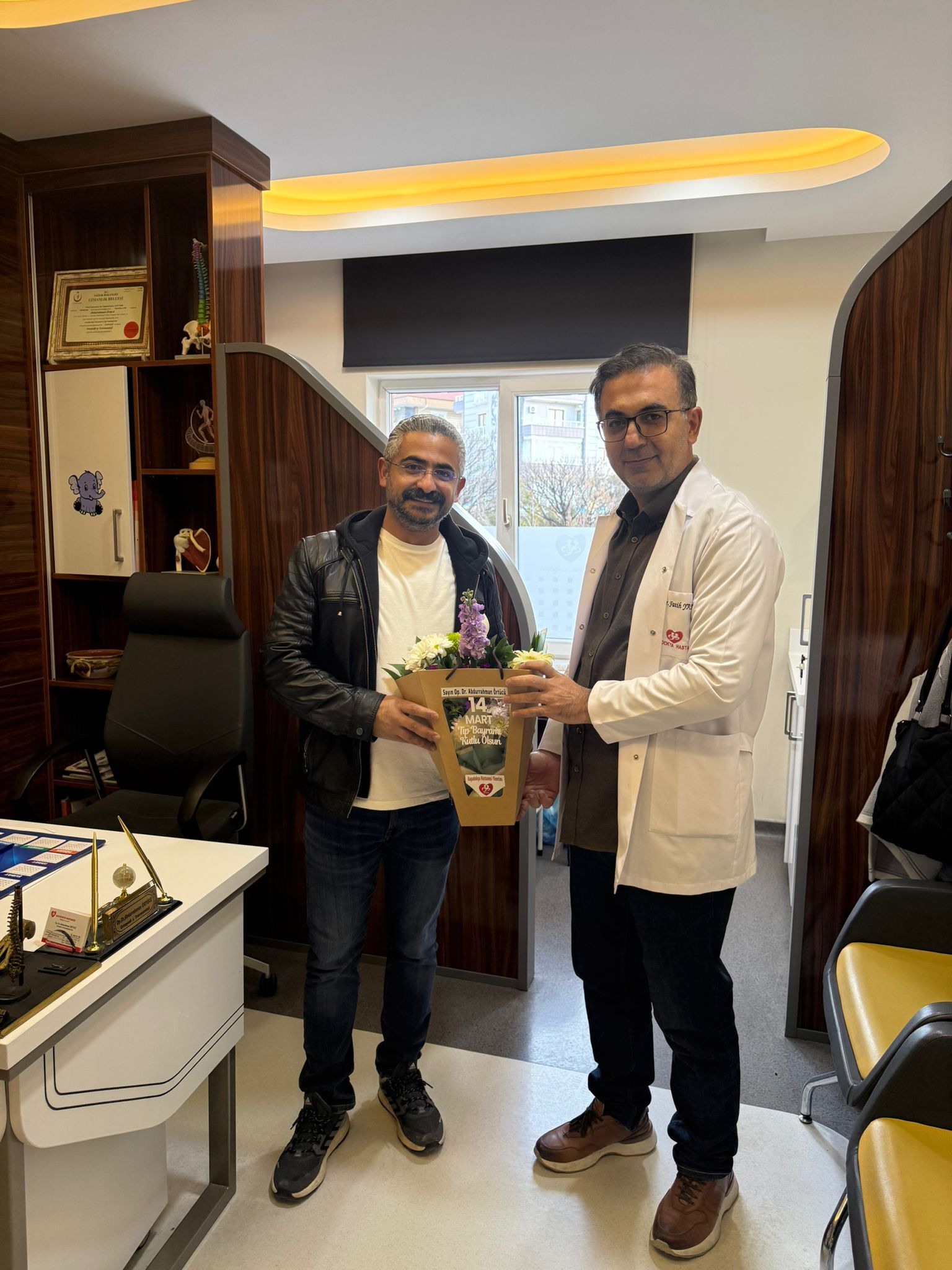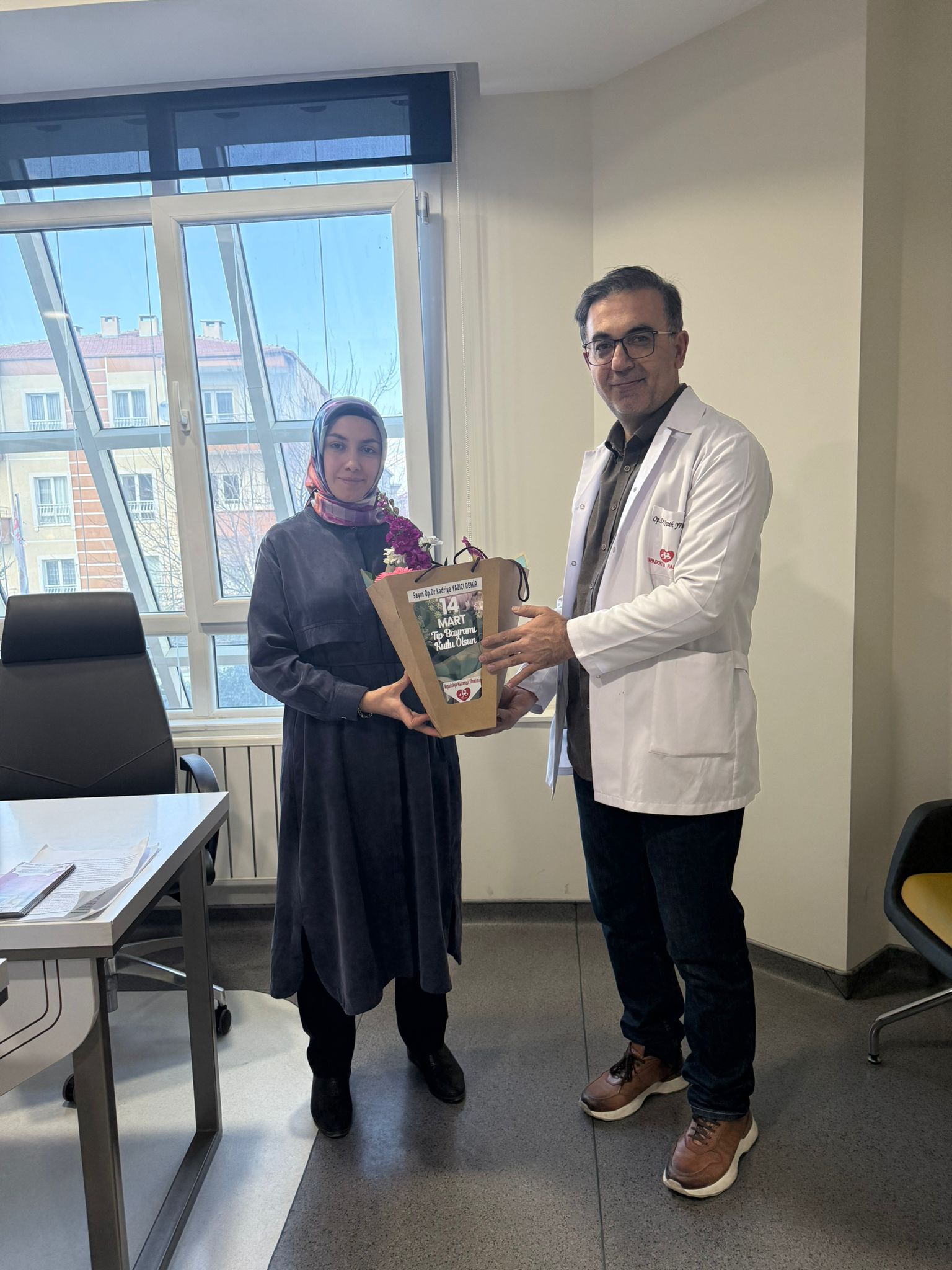 Başhekim Yakut, doktorların odalarına giderek her biri için isimlerine özel hazırlanan çiçekleri takdim etti. Samimi bir atmosferde gerçekleşen ziyaretlerde doktorlarla sohbet eden Yakut, sağlık çalışanlarının fedakârca yürüttükleri çalışmaların önemine dikkat çekerek tüm hekimlere teşekkür etti.