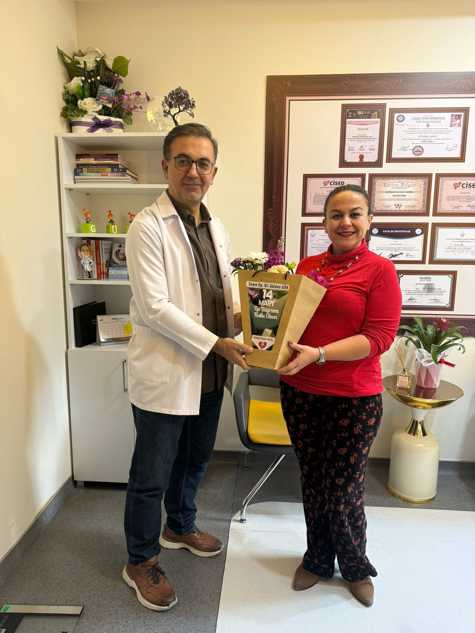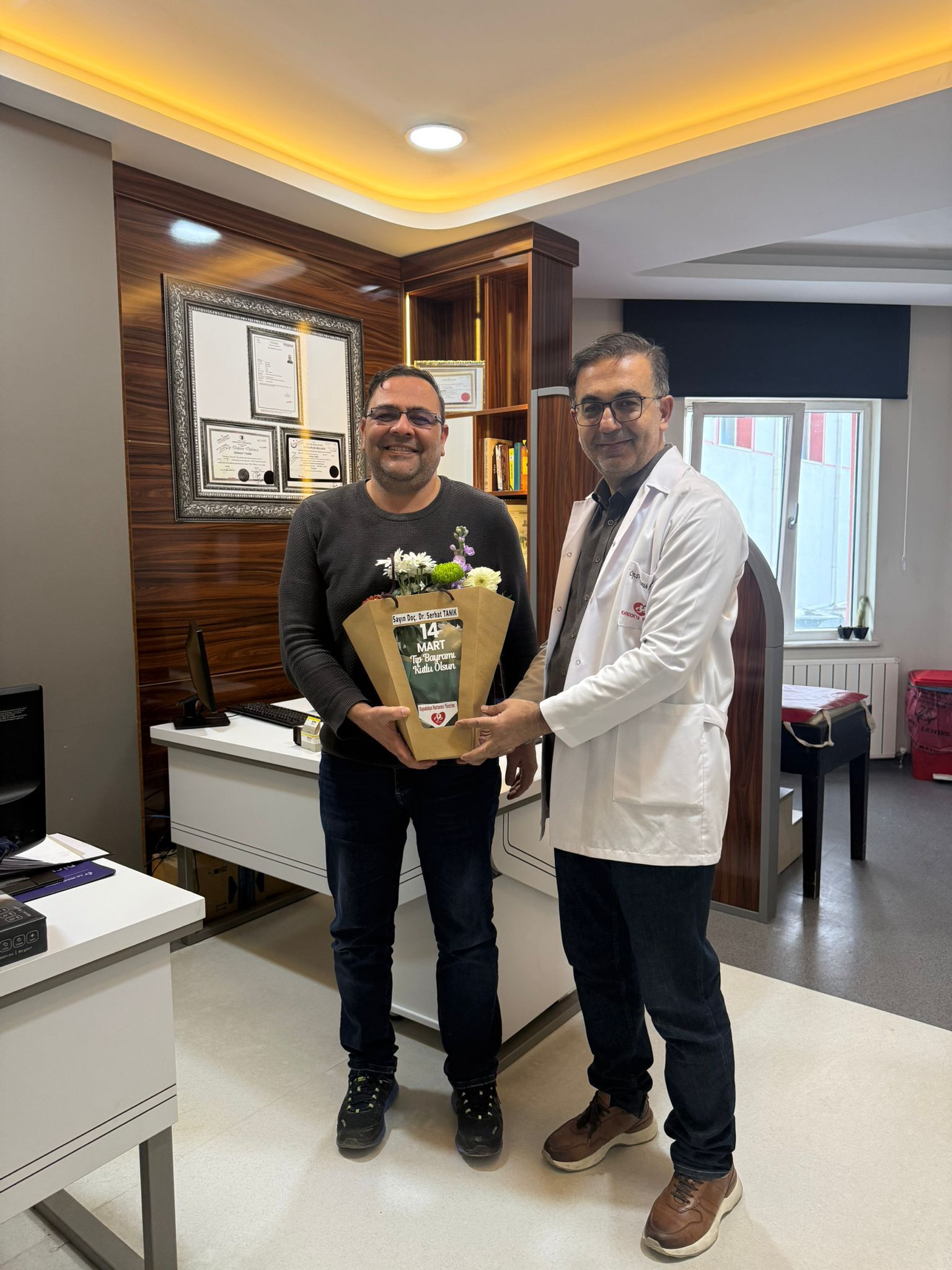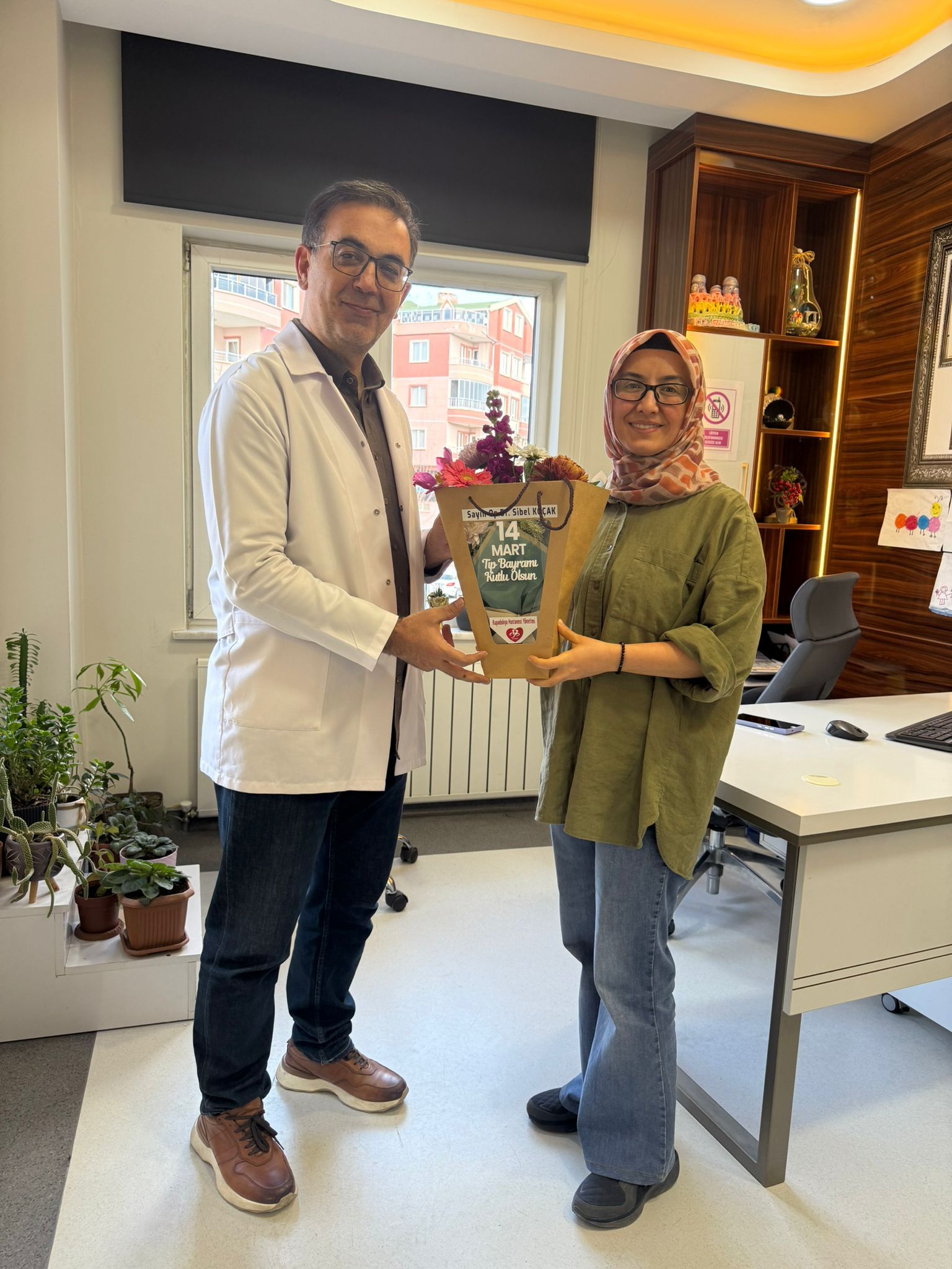 Başhekim Yakut, doktorların odalarına giderek her biri için isimlerine özel hazırlanan çiçekleri takdim etti. Samimi bir atmosferde gerçekleşen ziyaretlerde doktorlarla sohbet eden Yakut, sağlık çalışanlarının fedakârca yürüttükleri çalışmaların önemine dikkat çekerek tüm hekimlere teşekkür etti.