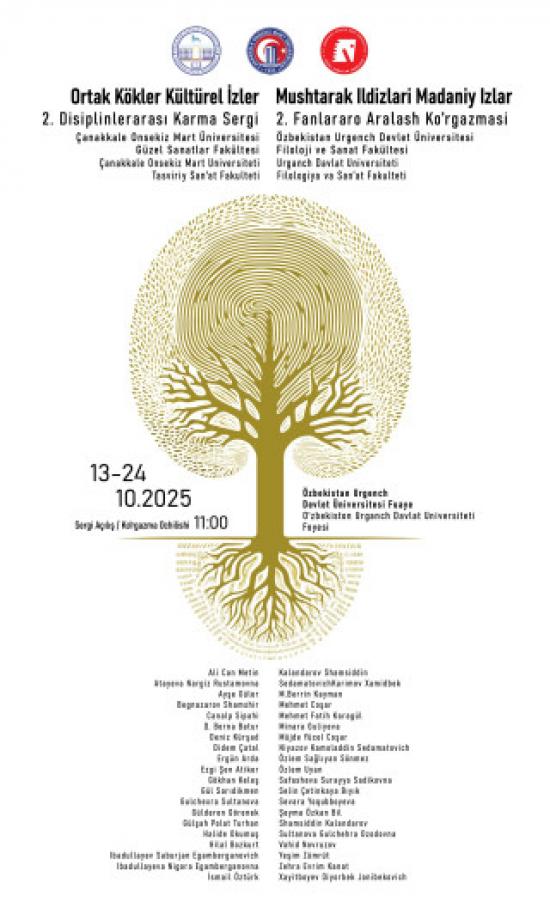 Çanakkale Onsekiz Mart Üniversitesi Güzel Sanatlar Fakültesi ile Urgench Devlet Üniversitesi Filoloji ve Sanat Fakültesi iş birliğinde düzenlenen “Ortak Kökler Kültürel İzler II. Disiplinlerarası Karma Sergi”, 13–24 Ekim 2025 tarihleri arasında gerçekleştiriliyor.