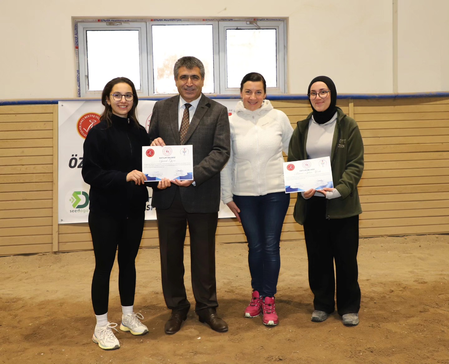 Federasyon Başkanı Birol Aydın adına takdim edilen plaket, Federasyon İl Temsilcisi Tarkan Güney tarafından Rektör Aktekin’e sunuldu. Program; NEVÜ Rektör Yardımcısı Prof. Dr. Bayram Deviren, Spor Bilimleri Fakültesi Dekanı Prof. Dr. Selçuk Akpınar, Atçılık-Binicilik Merkezi Müdürü Dr. Öğr. Üyesi Kürşat Özcan, Çekya’dan eğitmen Jana Tomiskova, akademisyenler, özel gereksinimli sporcular ve ailelerinin katılımıyla toplu fotoğraf çekiminin ardından sona erdi.