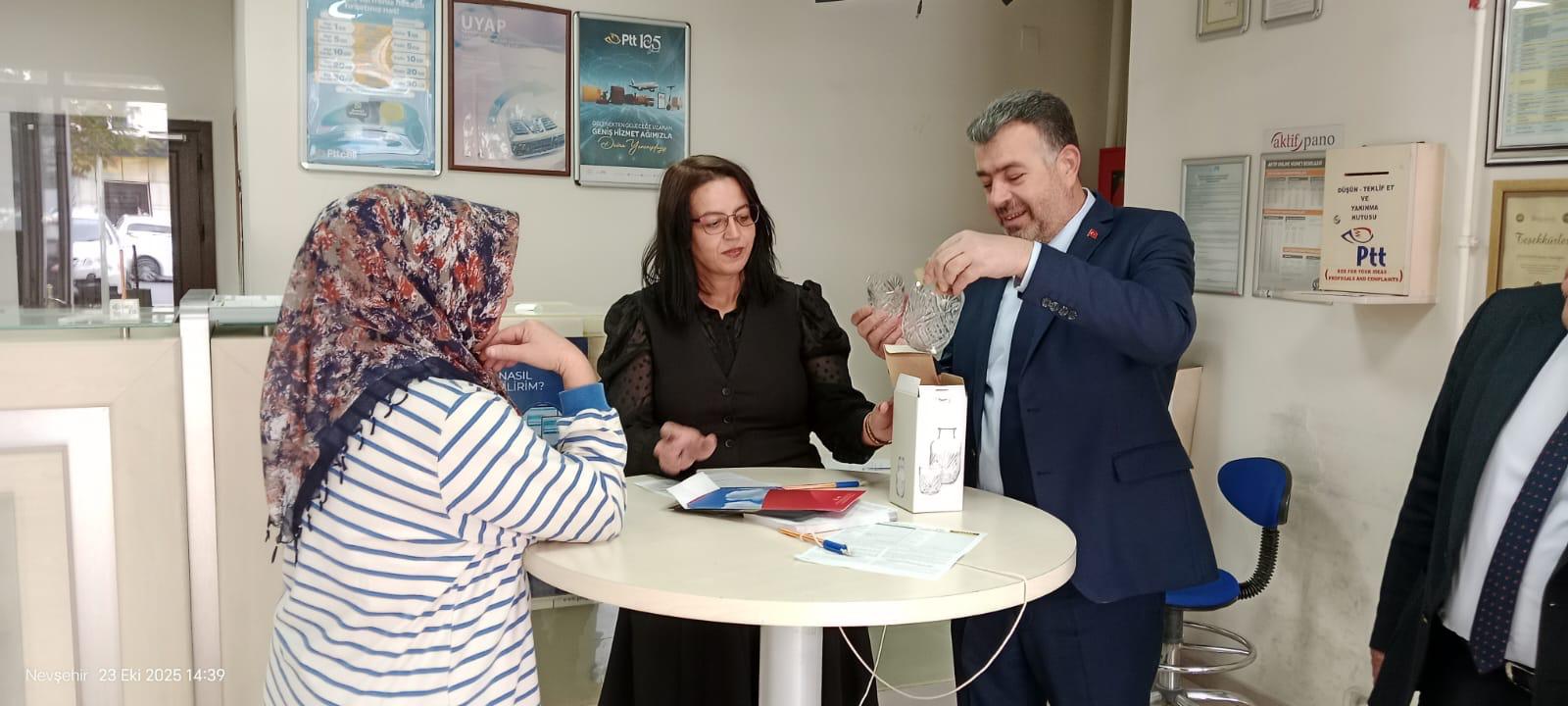 PTT’nin 185. Kuruluş yıldönümü nedeniyle, Nevşehir PTT Başmüdürü Niyazi BAL, İdari ve Mali Birimler Müdürü Gürbüz BALAK, İşletme Müdürü Ender UÇAR tarafından kutlama kapsamında her yıl dönümünde geleneksel hale getirilen 185. Müşteri beklenmeye başlandı.