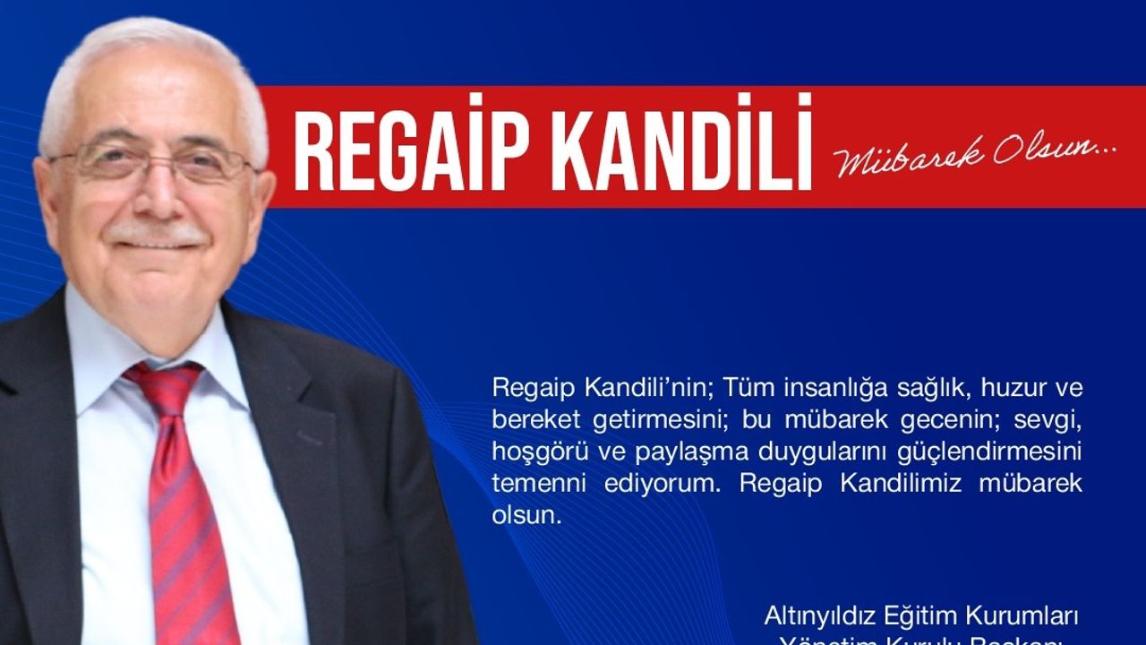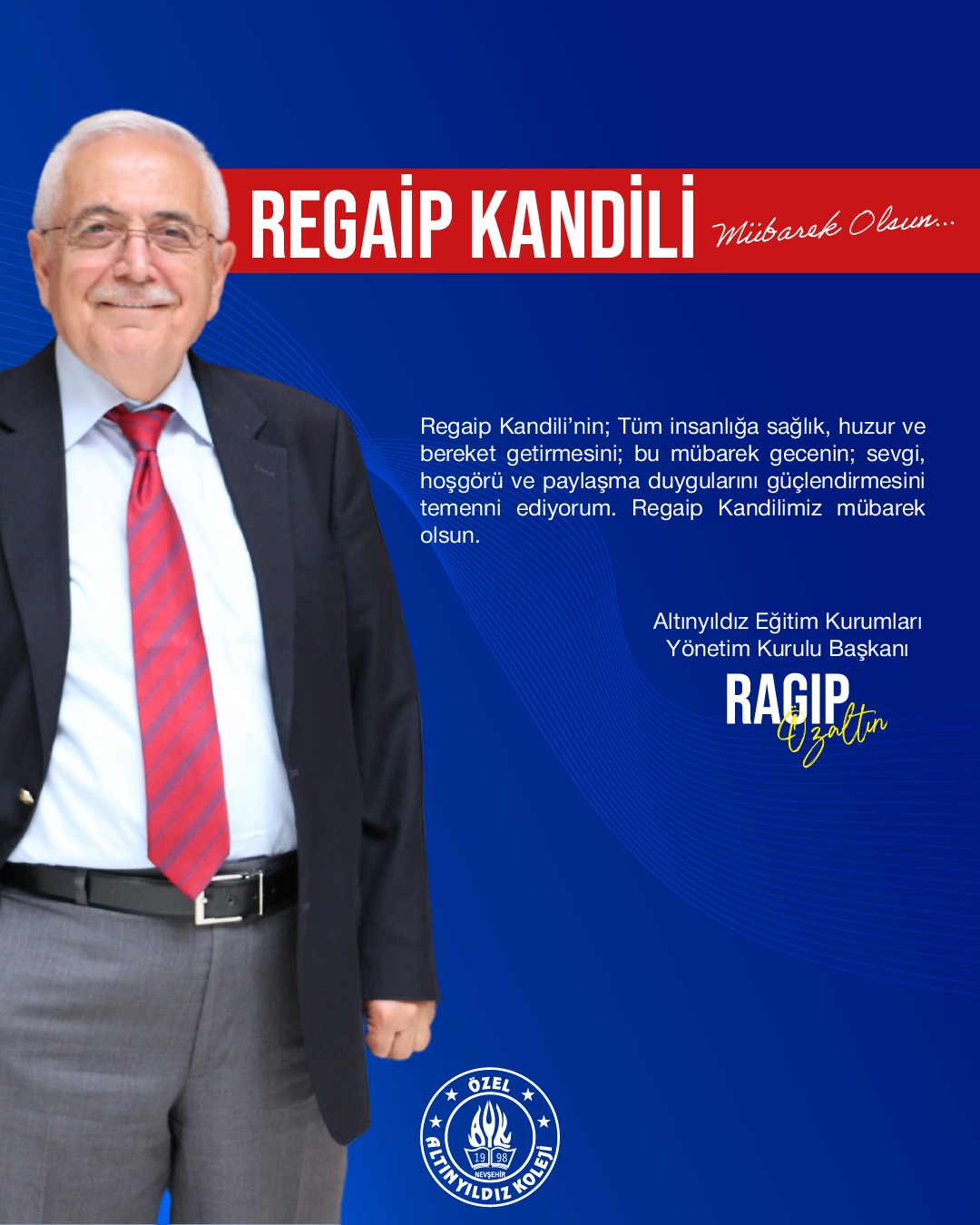 Altınyıldız Eğitim Kurumları Yönetim Kurulu Başkanı Ragıp Özaltın mesajında: Regaip Kandili'nin; Tüm insanlığa sağlık, huzur ve bereket getirmesini; bu mübarek gecenin; sevgi, hoşgörü ve paylaşma duygularını güçlendirmesini temenni ediyorum. Regaip Kandilimiz mübarek olsun.