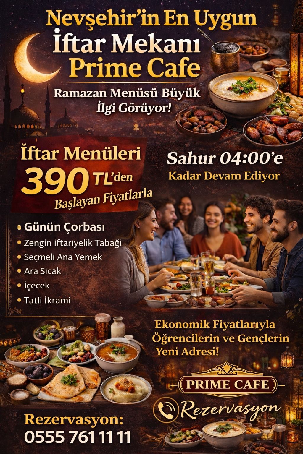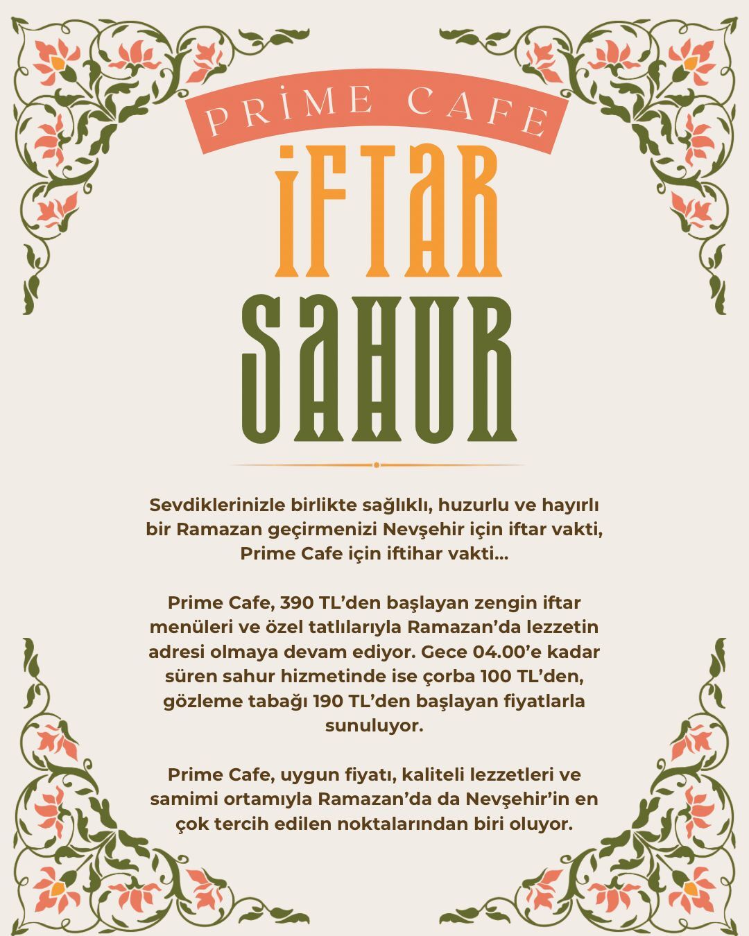 Nevşehir'de efsane mekan Prime Cafe'de sizleri sevdiklerinizle birlikte İFTARA Bekleriz.