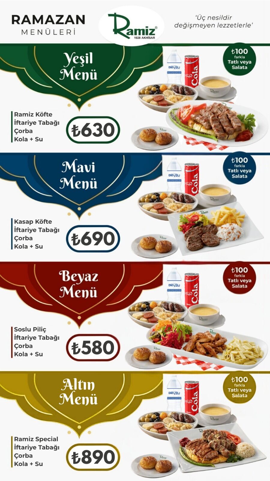 Bu menü özellikle Ramiz’in meşhur köftesini tercih eden misafirler için hazırlanmış.