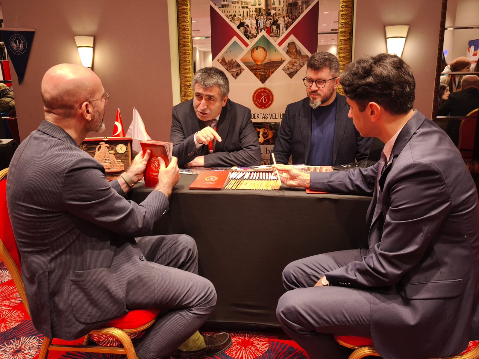 Nevşehir Hacı Bektaş Veli Üniversitesi (NEVÜ) Rektörü Prof. Dr. Semih Aktekin ile Uluslararası İlişkiler Ofisi Öğr. Gör. Şükrü Aydın, Türkiye Maarif Vakfı bünyesinde faaliyet gösteren Maarif Ajansı tarafından Fas’ın Kazablanka ve Rabat şehirlerinde düzenlenen “Türk Üniversiteleri Eğitim Fuarı’na” katıldı.