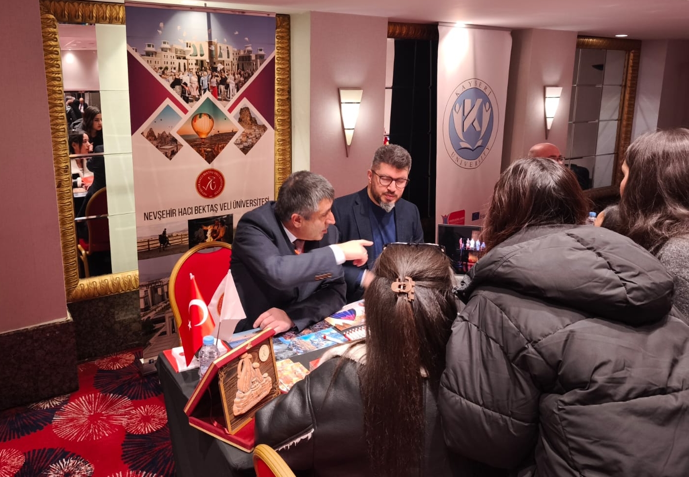 Fuar kapsamında eğitimciler ve öğrencilerle bir araya gelen Rektör Aktekin ve Öğr. Gör. Aydın tarafından, NEVÜ’nün akademik imkânları, bölümleri, uluslararası iş birlikleri, değişim programları ve Kapadokya bölgesinin sunduğu kültürel ve sosyal avantajlar hakkında bilgiler paylaştı.