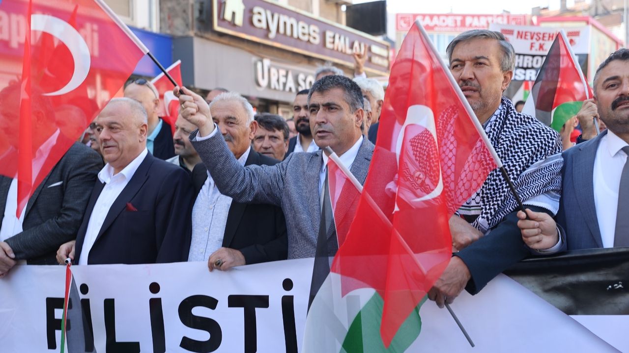 “Filistin’e Destek Platformu” tarafından düzenlenen ve Nevşehir Merkez Köprübaşı’ndan başlayarak Valilik önüne kadar devam eden yürüyüşte vatandaşlar, öğrenciler, siyasi parti ve STK temsilcileri ellerinde Türk ve Filistin bayraklarıyla “Özgür Filistin”, “Gazze yalnız değildir” ve “Zulme sessiz kalma” sloganları attı.