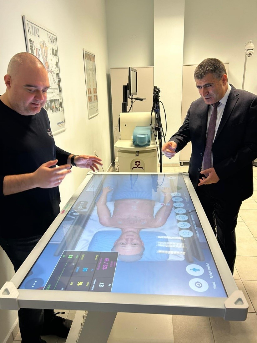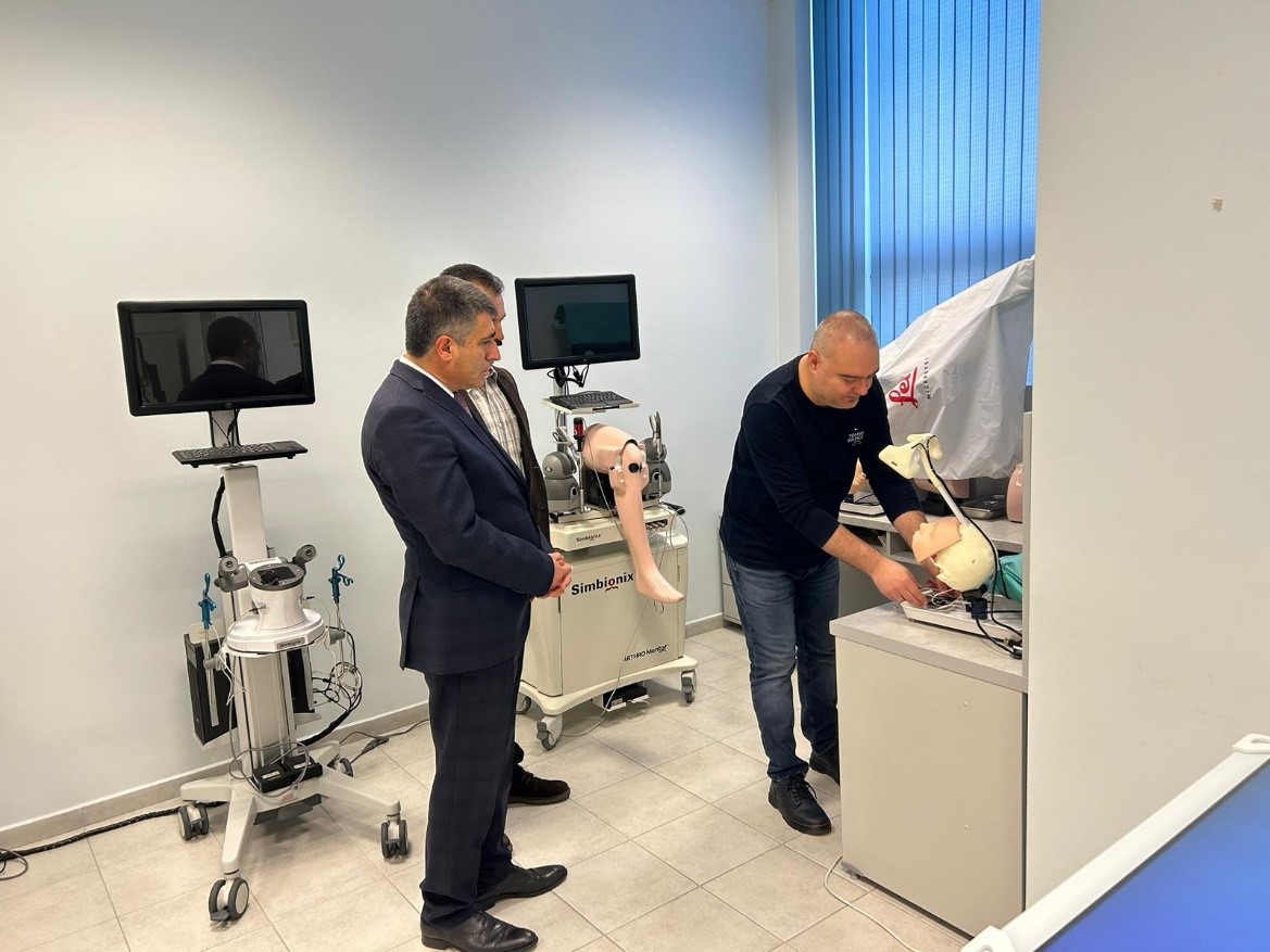 Tıbbı müdahaleler için geniş kapsamlı, bilgisayar destekli elektronik donanımlı mankenler ve dijital simülasyon araçları ile eğitim olanağı sunan merkezde Rektör Prof. Dr. Semih Aktekin ve beraberindekiler Halk Sağlığı Fakültesi Dekan Yardımcısı Prof. Dr. Nonka Mateya ve Merkez Uzman Ekibi ile incelemeler gerçekleştirdi. Merkez Uzmanları cihazların fonksiyonları ve kullanımı ile ilgili bilgi ve deneyimlerini, Merkezi kullanan gruplar ve grupların nitelikleri hakkında sunumda bulundular.