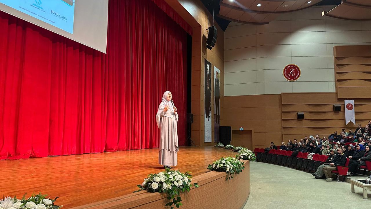 Büyük Aile Platformu’nun da destek verdiği programda Saliha Erdim, modern çağda aile kurumunun karşılaştığı zorluklara ve bu zorluklar karşısında ailenin kendi “öz” değerlerine dönmesinin önemine vurgu yaptı.