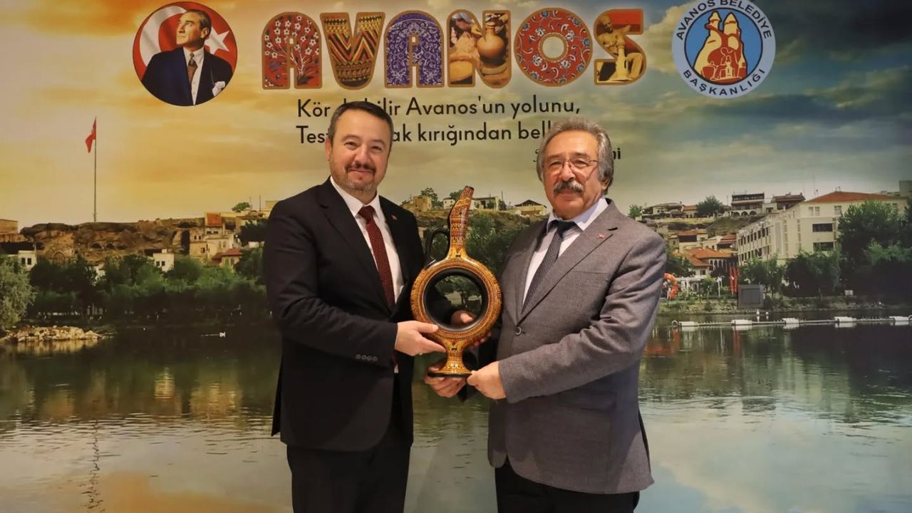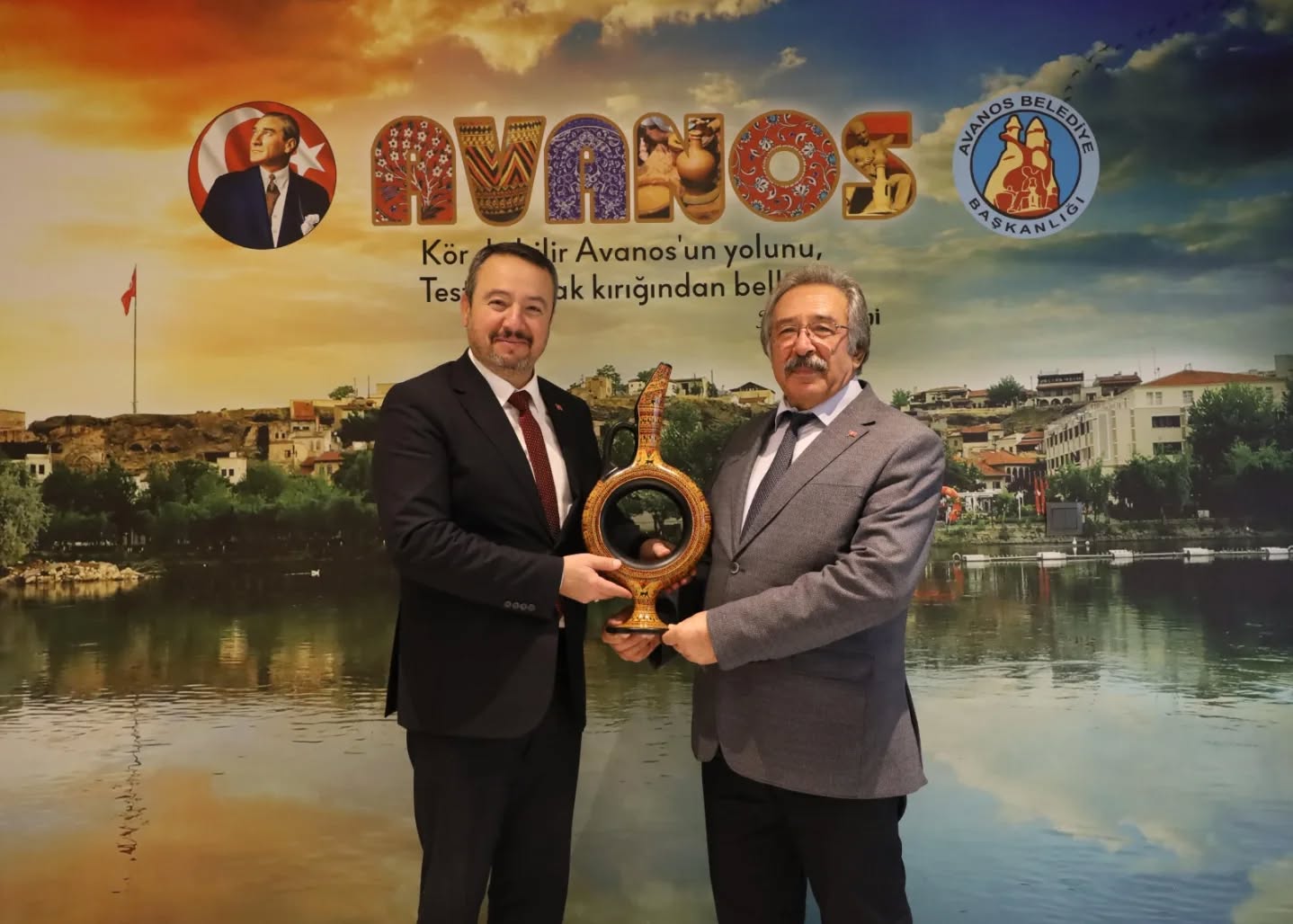 Ziyarette, iki başkan ilçelerin yönetimi ve belediyecilik hizmetleri üzerine fikir alışverişinde bulunurken, Avanos Belediye Başkanı Sarıtaş, nazik ziyaretleri için Başkan Öztaş’a teşekkür etti ve ilçenin geleneksel el sanatı ürünlerinden Rapido Hitit Testisi hediye etti.