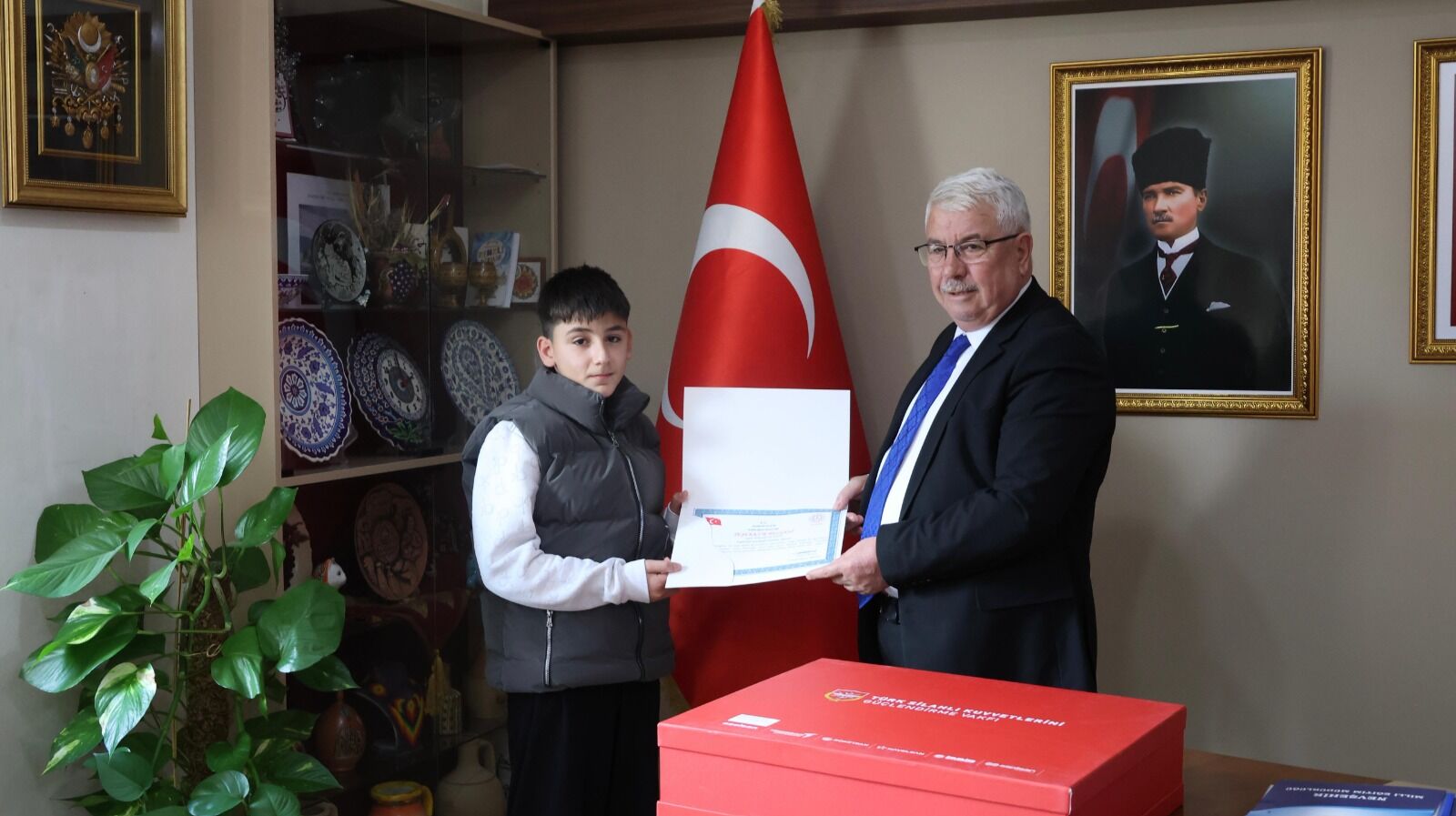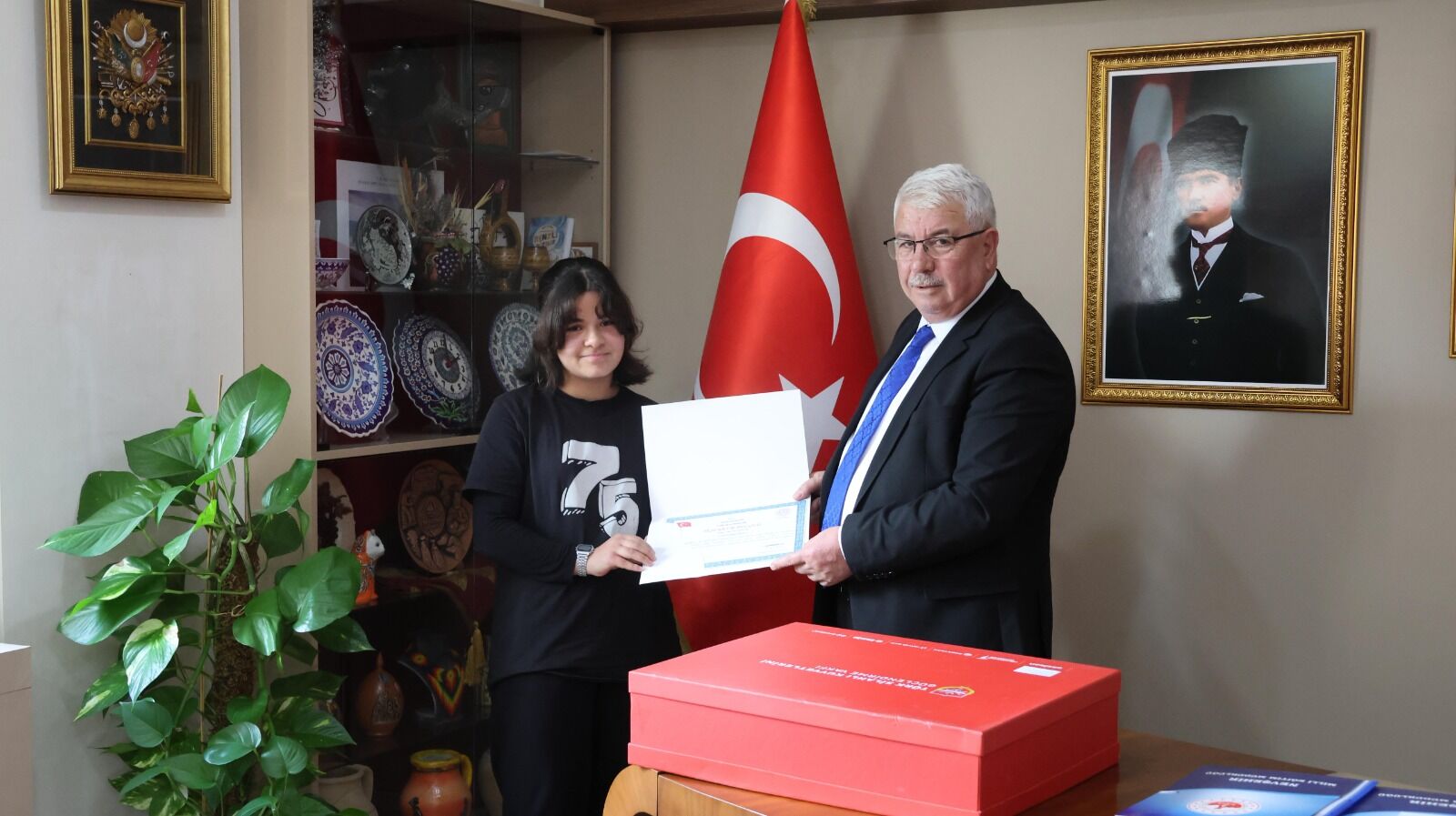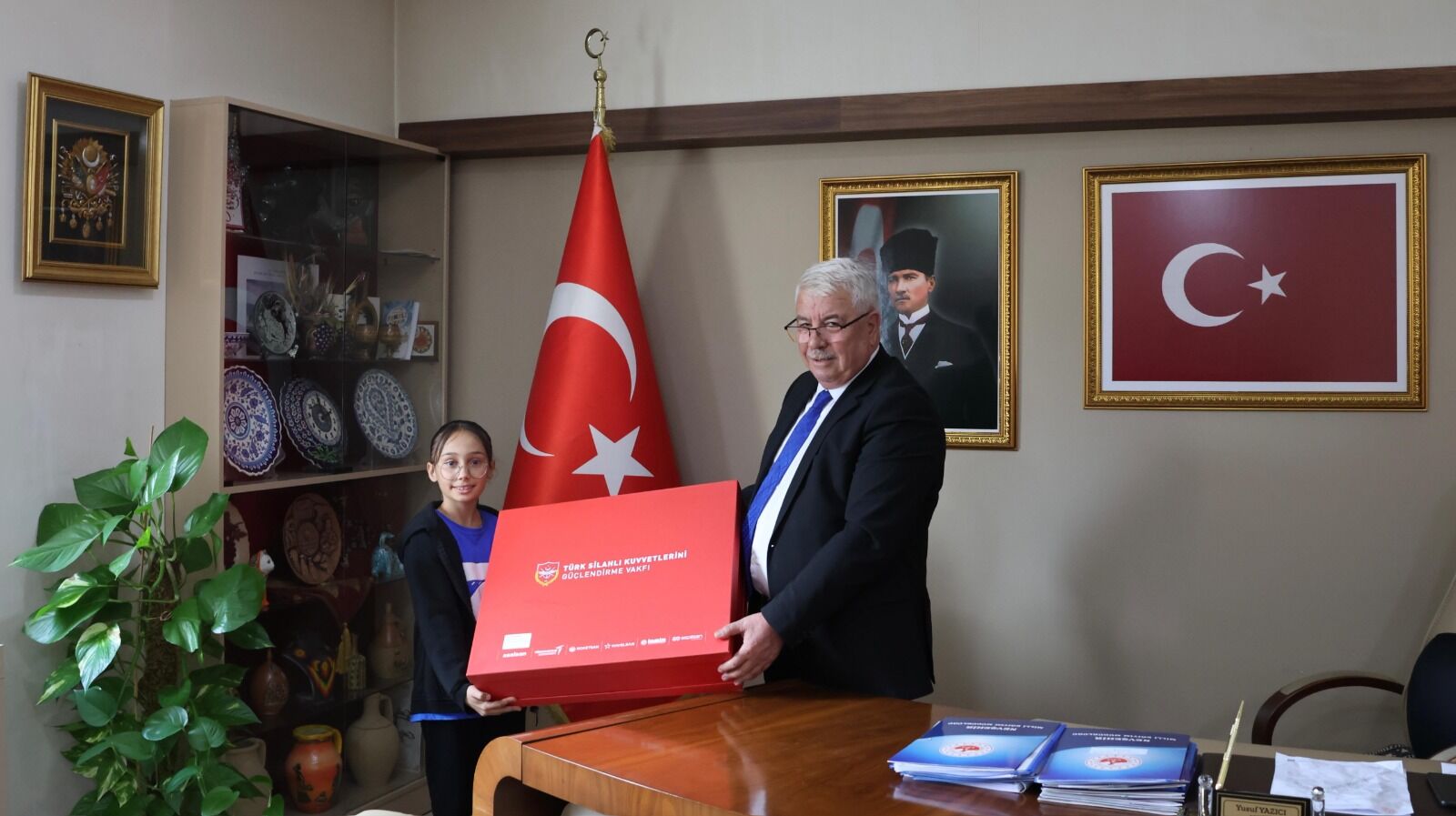 Bakanlığımız ile Türk Silahlı Kuvvetlerini Güçlendirme Vakfı iş birliğinde yürütülen, öğrencilerimizin milli ve manevi değerlerimizden ilham alarak estetik bakış açısı geliştirmelerini, özgün tasarım becerilerini ortaya koymalarını ve sanatsal üretim yoluyla savunma sanayii bilincini güçlendirmelerini amaçlayan "Savunmadan Sanata: Genç Yetenekler Özel Gün Kartı ve Tişört Tasarım Yarışması" ödül töreni gerçekleştirildi.