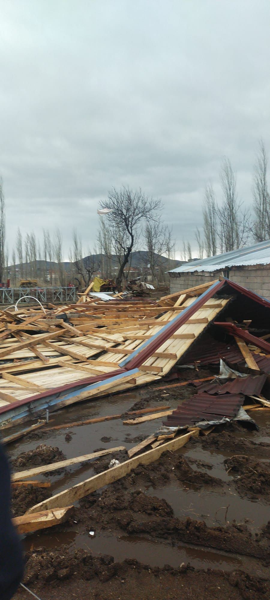 Nevşehir’in Kavak kasabasında hayvancılıkla uğraşan bir vatandaşın mandırasının çatısı da fırtına nedeniyle yerinden söküldü. Olay sırasında içeride bulunan hayvanların zarar görmemesi olası bir faciayı önledi. Çevrede herhangi bir yaralanma yaşanmazken, çatının uçma anı güvenlik kameralarına yansıdı.