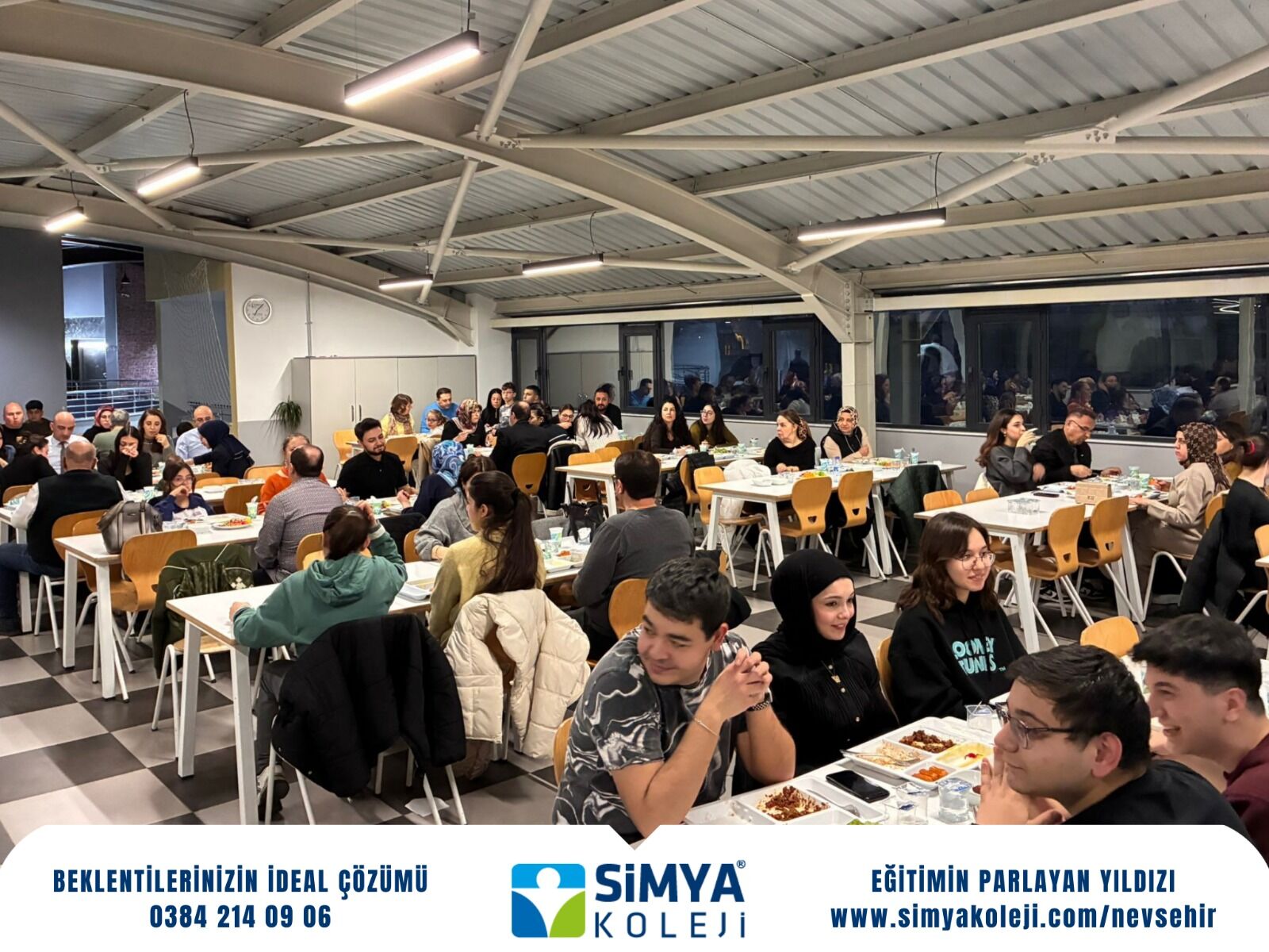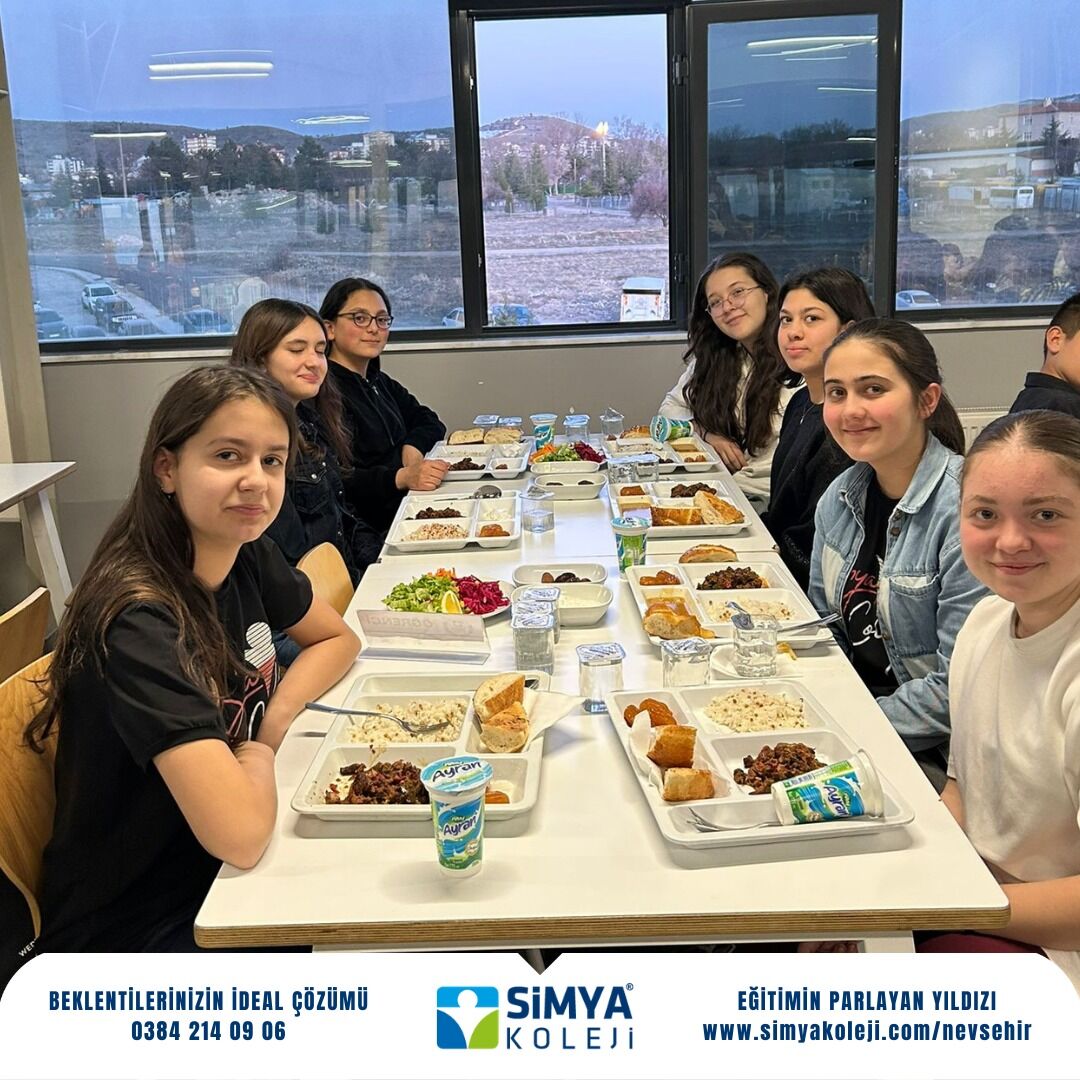 Nevşehir Simya Koleji, Ramazan ayının birlik ve paylaşma ruhunu yaşatmak amacıyla öğretmen, öğrenci ve velilerini iftar sofrasında buluşturdu. Okul yemekhanesinde düzenlenen iftar programına öğretmenlerin yanı sıra 7, 8, 10 ve 12. sınıf öğrencileri ile velileri yoğun katılım gösterdi.