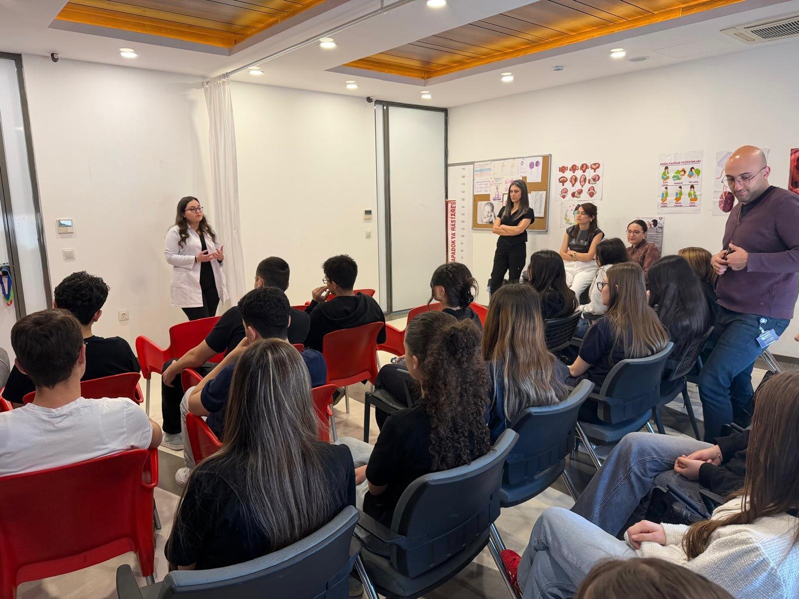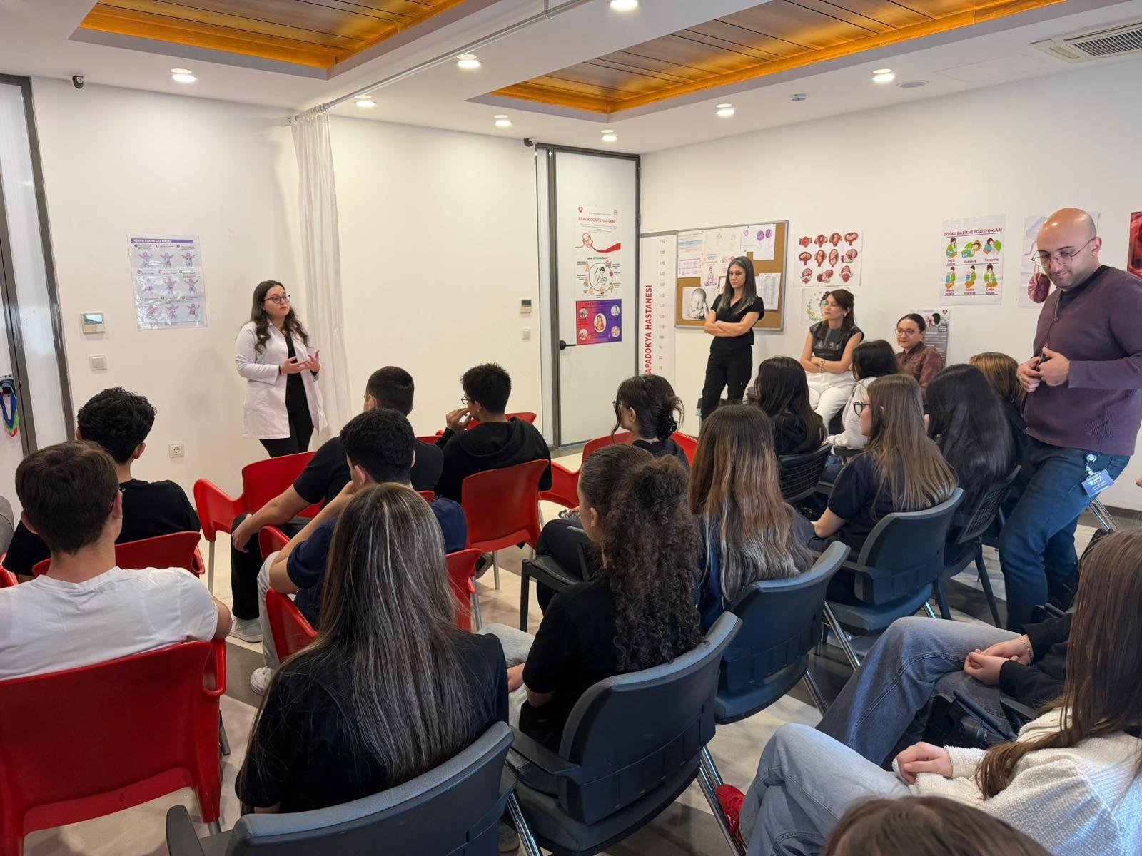 Hastane gezisiyle başlayan etkinlikte öğrenciler, sağlık sektörünün işleyişini yerinde gözlemleme fırsatı buldu. Polikliniklerden tedavi alanlarına kadar birçok birimi gezen öğrenciler, hem modern sağlık hizmetlerini yakından gördü hem de farklı meslek gruplarının görevlerini detaylı şekilde öğrenme imkânı elde etti.
