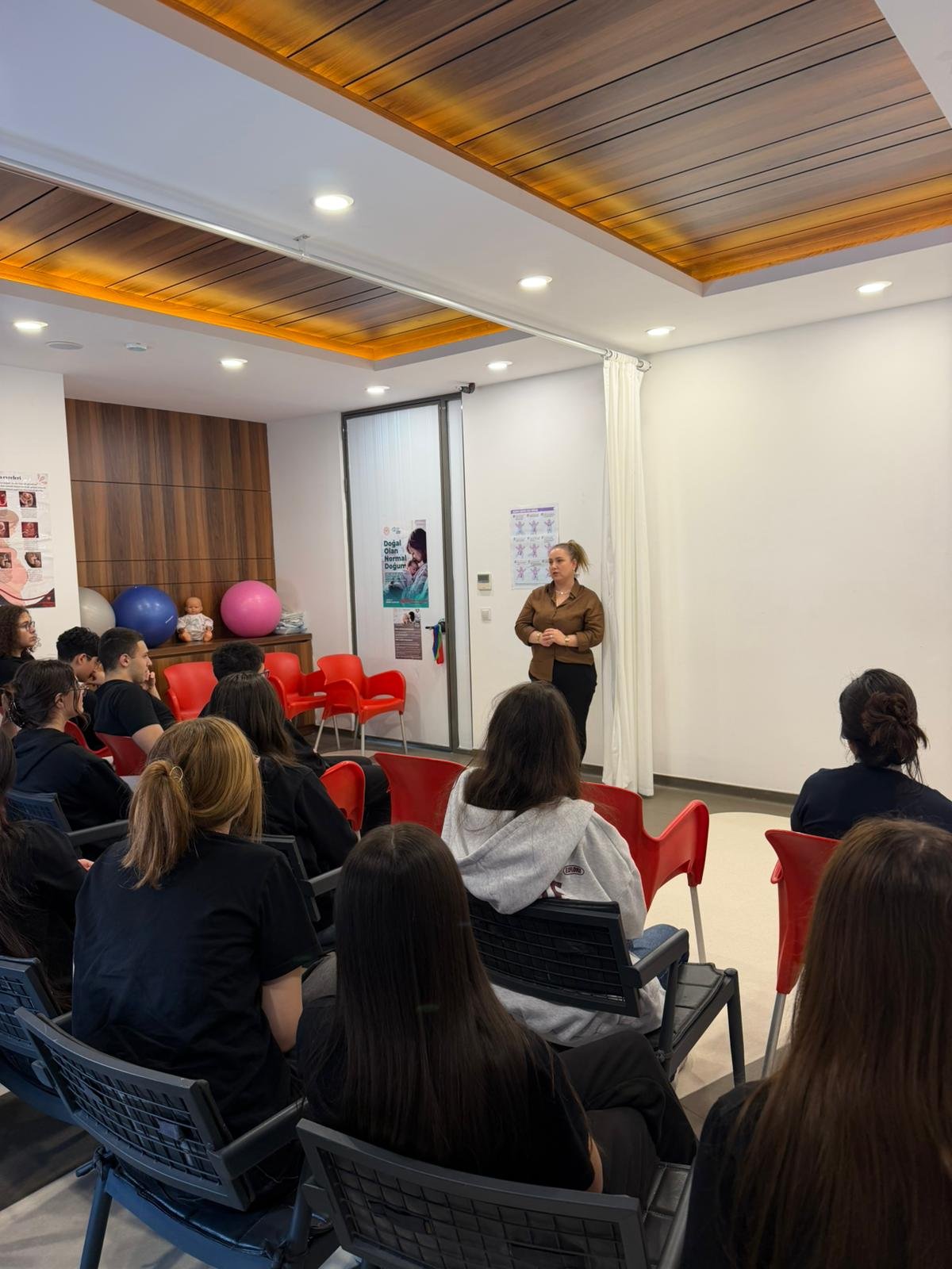 Program kapsamında alanında uzman isimler öğrencilerle bir araya gelerek mesleklerine dair bilgi ve tecrübelerini paylaştı. İdari İşler Müdürü Aslı Güller ve Başhemşire Yasemin Ulukuş’un yanı sıra; Fizik Tedavi ve Rehabilitasyon Uzmanı Dr. Burcu Avşaroğlu, Uzman Klinik Psikolog Kübra Güner, Uzman Diyetisyen Canan Gündüz ve Dil ve Konuşma Terapisti Gizem Akyüz, kendi branşlarını tanıtarak öğrencilerin merak ettiği soruları yanıtladı.