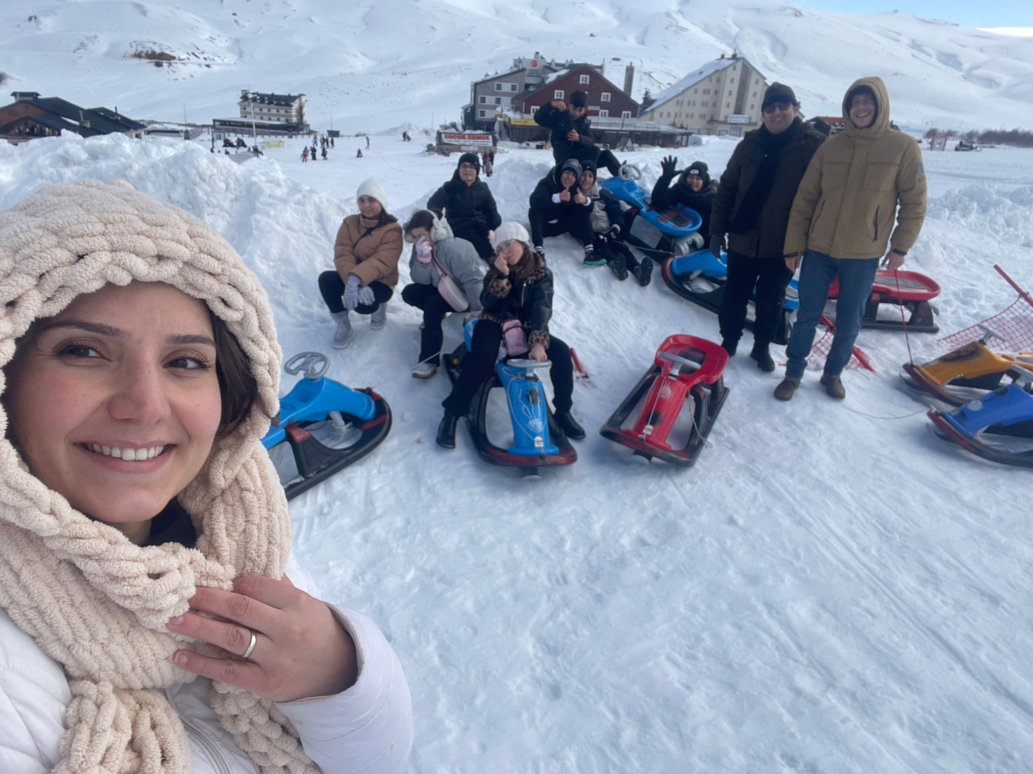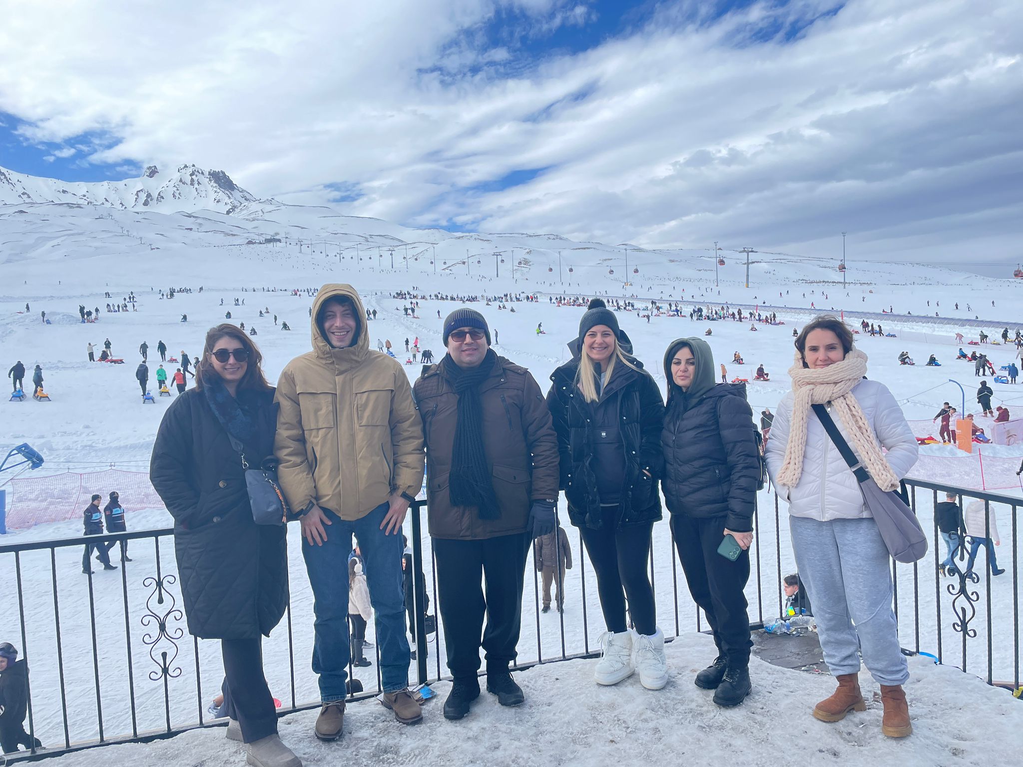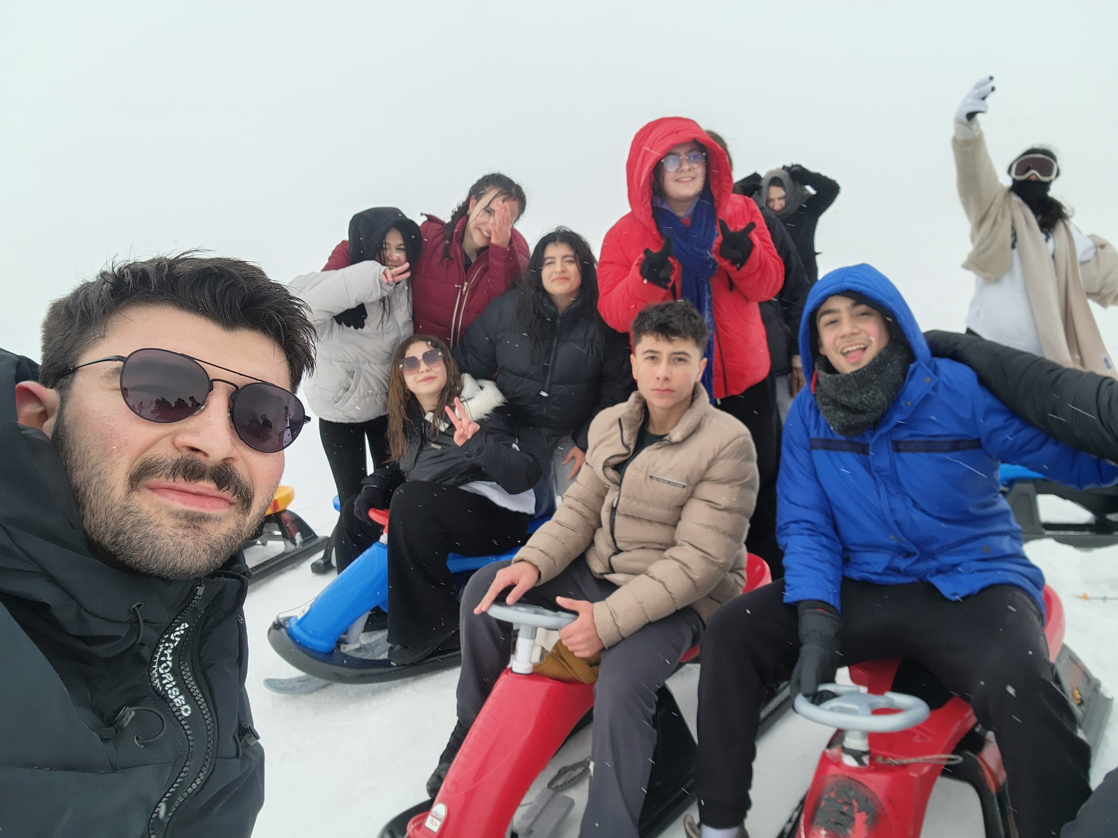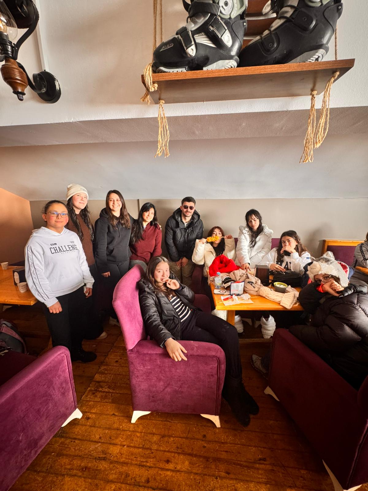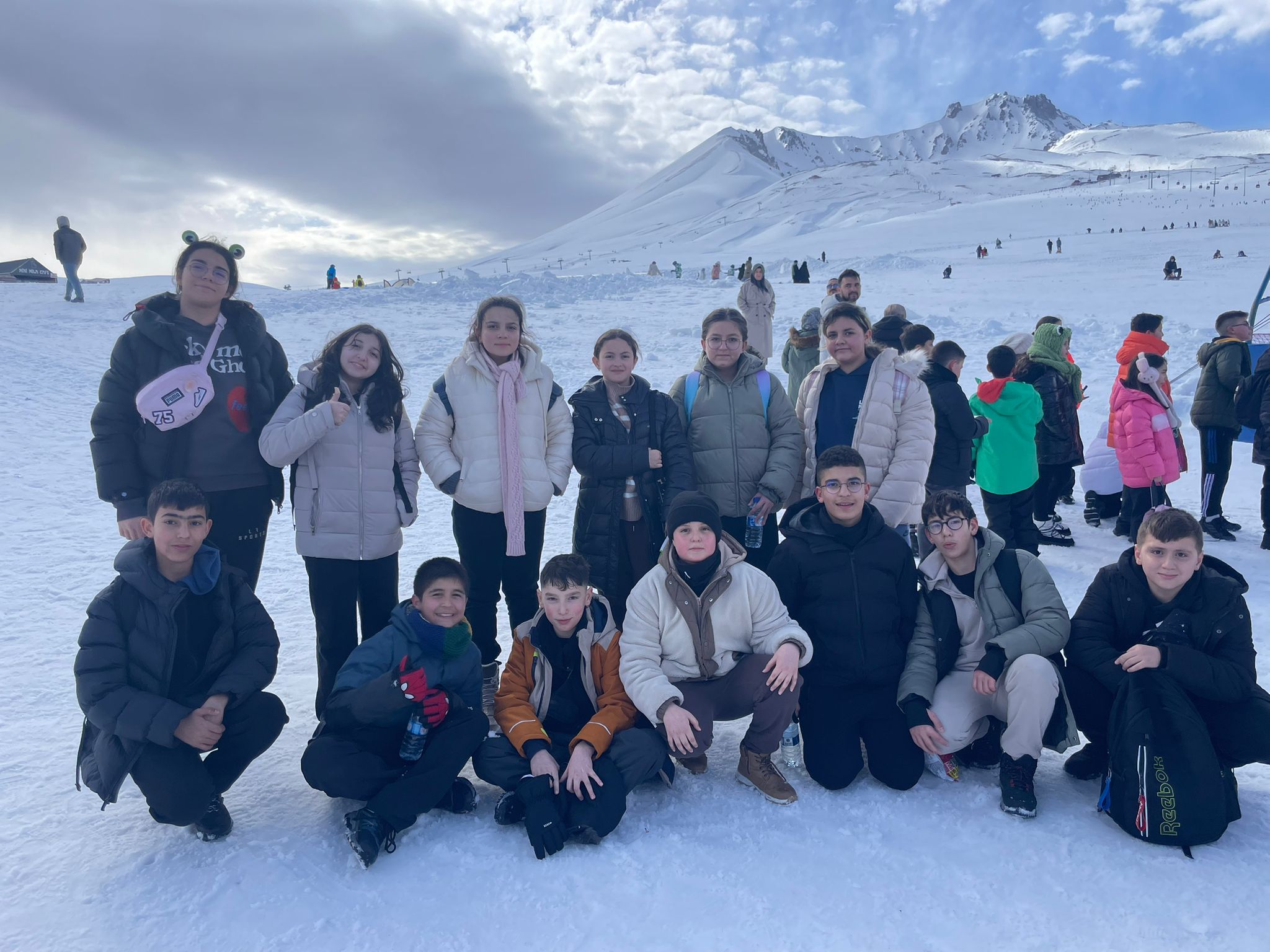 Beyaz örtüyle kaplı Erciyes'in muhteşem doğasında bir araya gelen öğrenciler, arkadaşlarıyla sosyalleşmenin ve kış mevsiminin keyfini çıkardı.