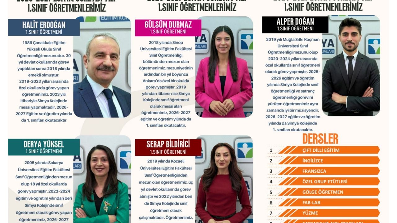 Simya Koleji Müdürlüğü yaptığı açıklamada, çocukları 1. sınıfa başlayacak velilerin heyecan ve endişelerinin farkında olduklarını, Simya Koleji olarak alanında uzman, yenilikçi, dinamik, sosyal ve kültürel alanda kendini geliştirmiş, öğrencilerin gelişimine en üst düzeyde katkı sağlayacak, kendini güncelleyen ve öğrencilerini geleceğe hazırlayan niteliklere sahip sınıf ve branş öğretmenleri ile velilere "Beklentilerinizin İdeal Çözümü" olacaklarını ifade etti.