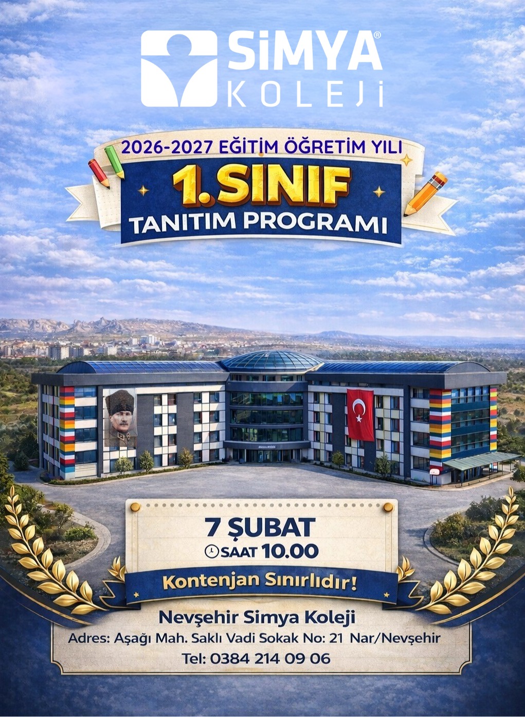 Nevşehir'de "Eğitimin Parlayan Yıldızı, Beklentilerinizin İdeal Çözümü" Simya Koleji en yenilikçi ve dinamik 1.sınıf eğitim kadrosuyla 2026-2027 eğitim öğretim yılı için kayıtlara devam ediyor. Simya Koleji kayıtlarına hız kesmeden devam ederken sınırlı sayıda kontenjan için velileri okula davet ediyor.