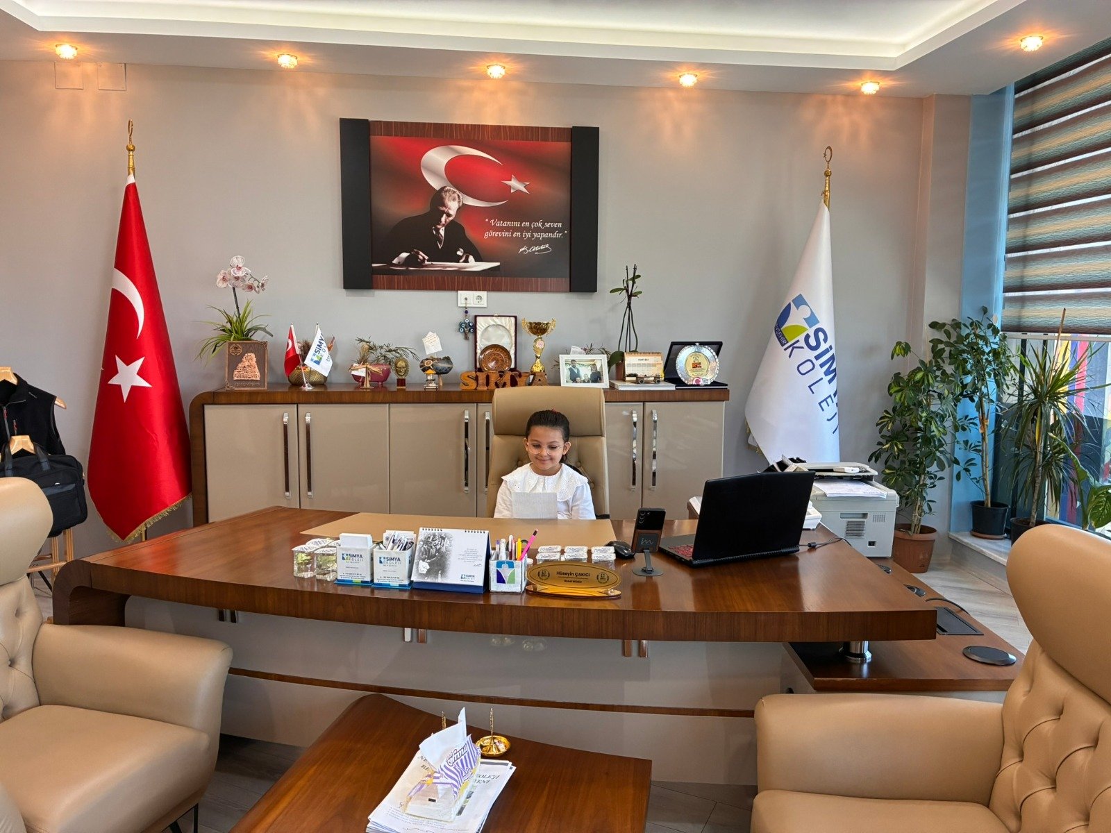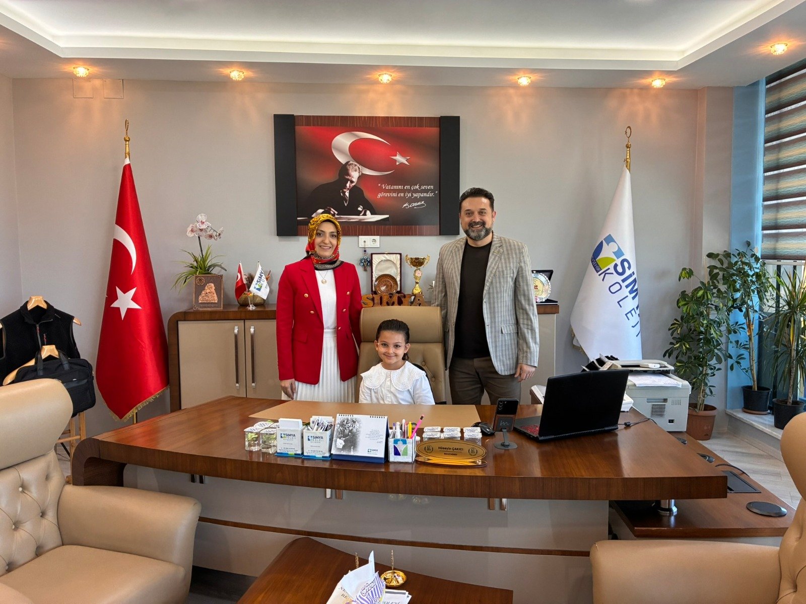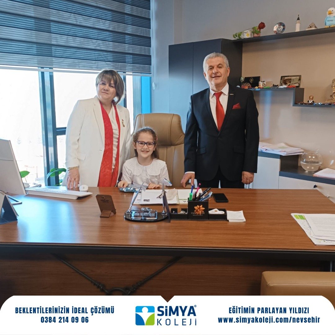 23 Nisan Ulusal Egemenlik ve Çocuk Bayramı kutlamaları kapsamında gelenekselleşen makam devir teslim törenleri bu yıl da Simya Kolejinde renkli görüntülere sahne oldu. Genel Müdür Hüseyin Çakıcı ve İlköğretim Müdürü Çetin Kurtpınar'ın koltuğuna bu kez boyları koltuğa zor yetişen anasınıfı ve ilkokul öğrencileri oturdu.