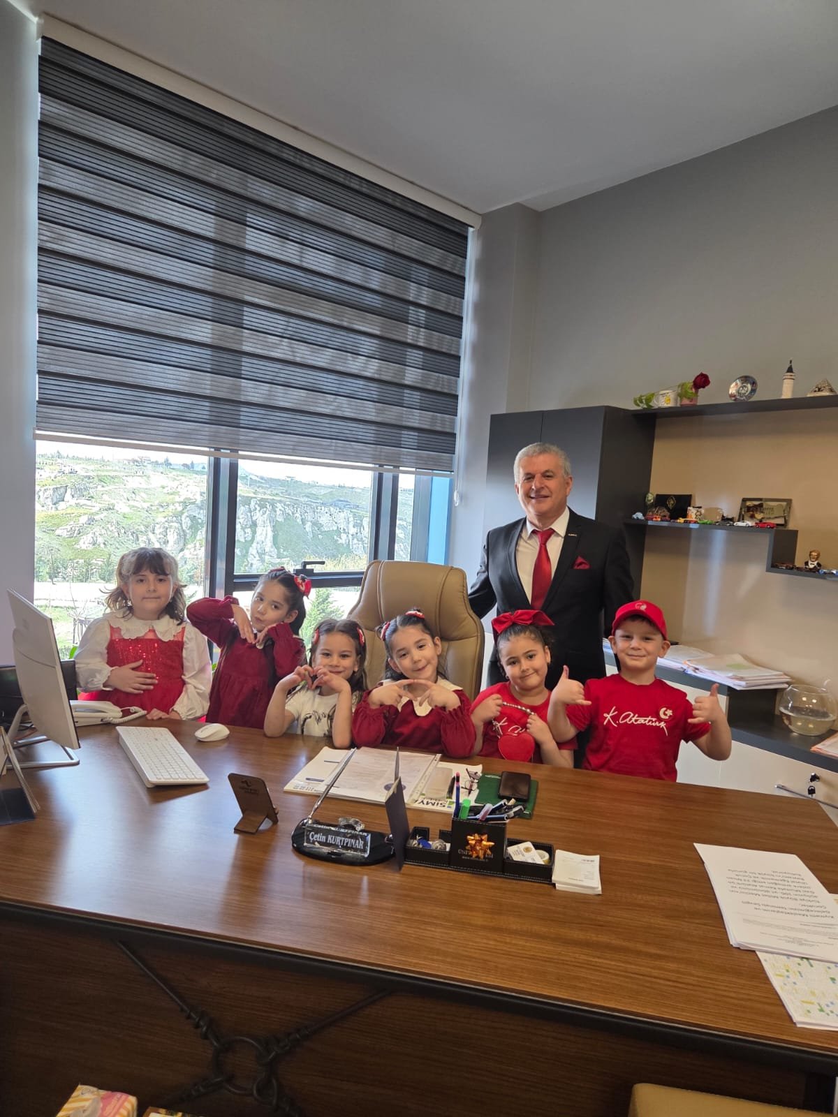Kutlamaların en sevilen geleneklerinden biri olan "makam devri" etkinliğinde, anasınıfı ve ilkokul öğrencileri okul müdürlüğünü devraldı.