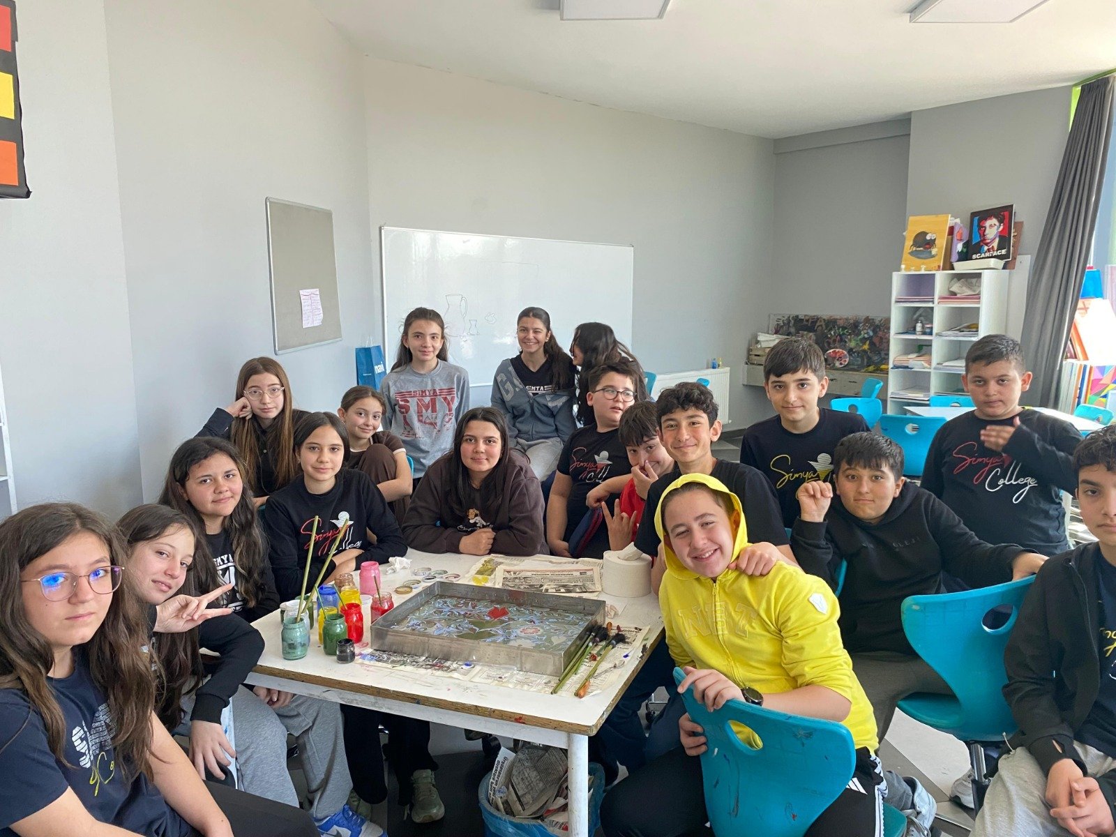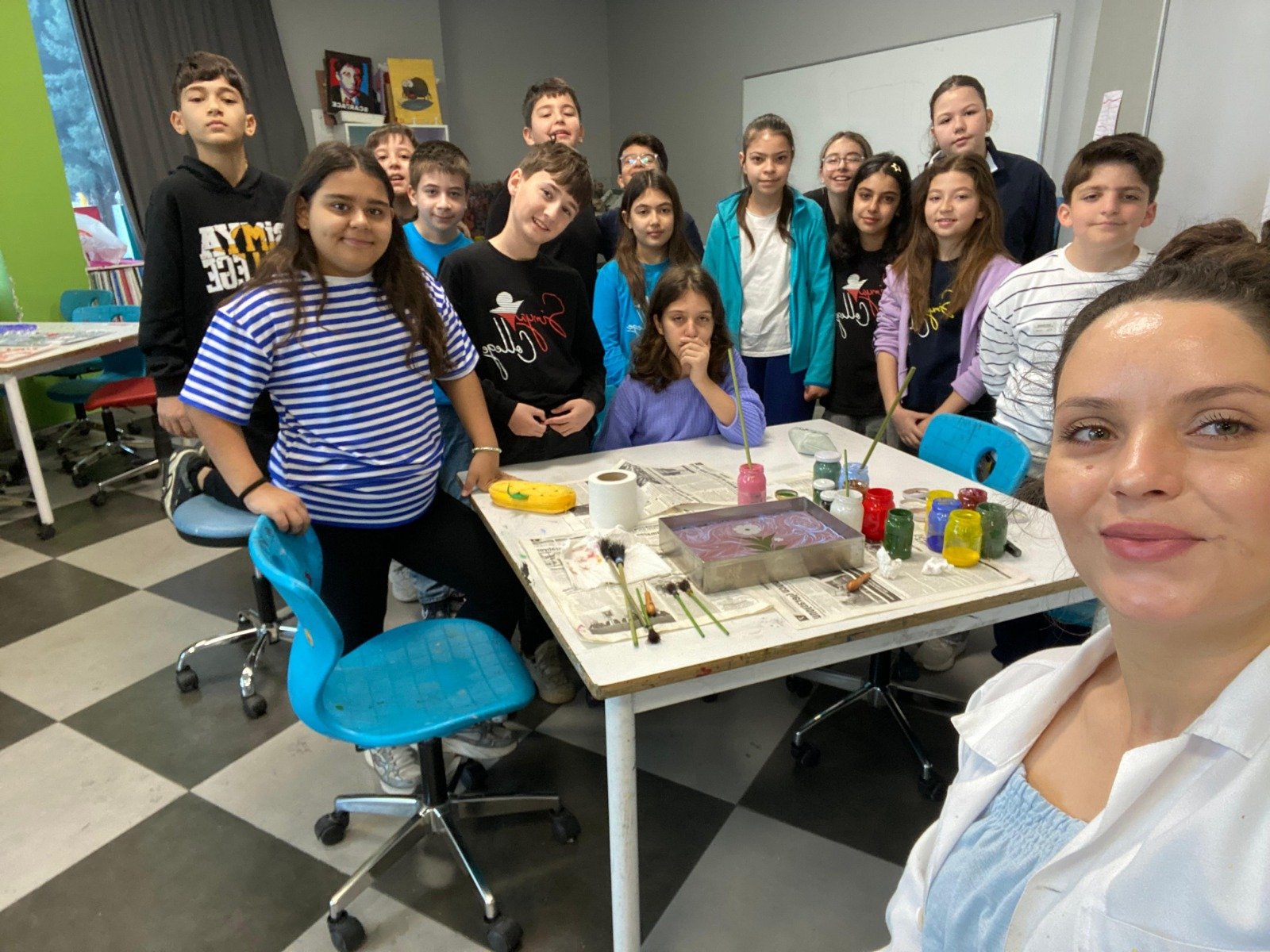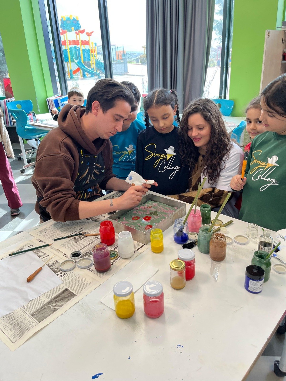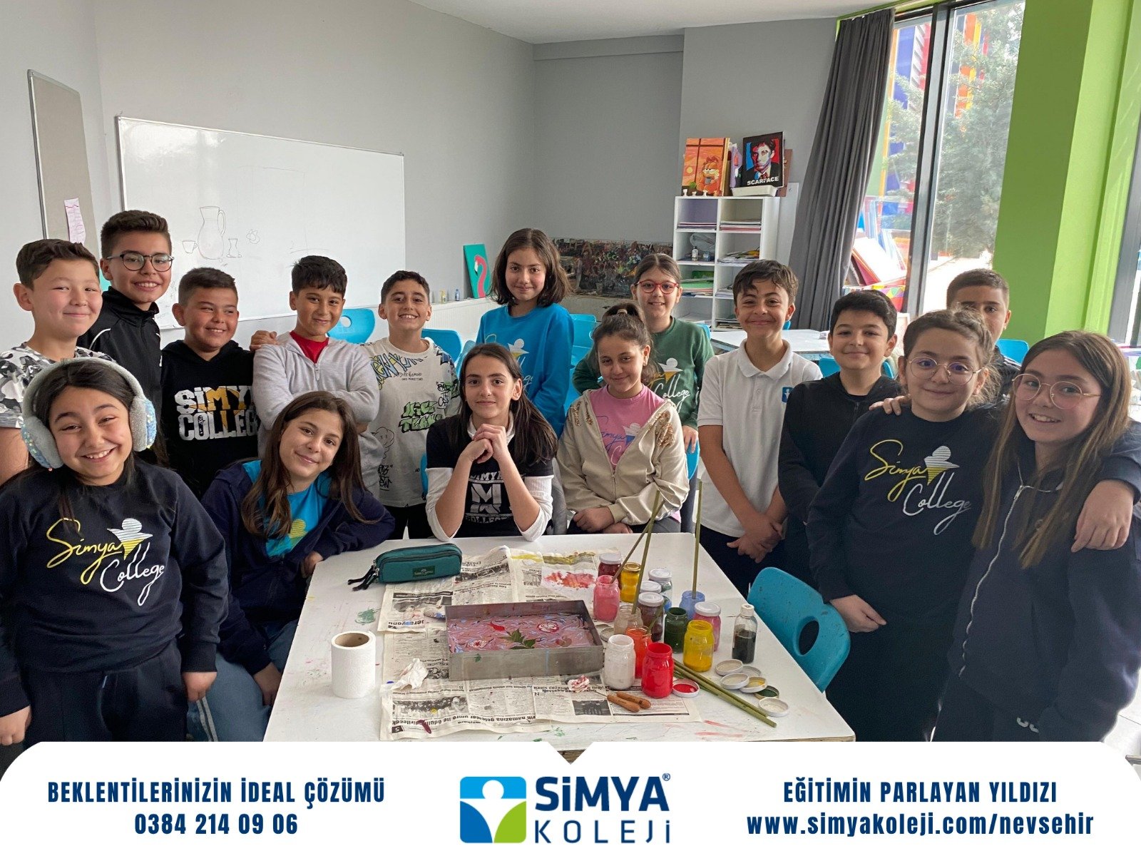 Nevşehir Simya Koleji Görsel Sanatlar öğretmenleri tarafından gerçekleştirilen Ebru sanatı etkinliği, öğrencilerden yoğun ilgi gördü. Geleneksel Türk sanatları arasında önemli bir yere sahip olan Ebru çalışmalarıyla öğrenciler, suyun üzerinde şekillenen renklerin büyülü dünyasını keşfetme fırsatı buldu.