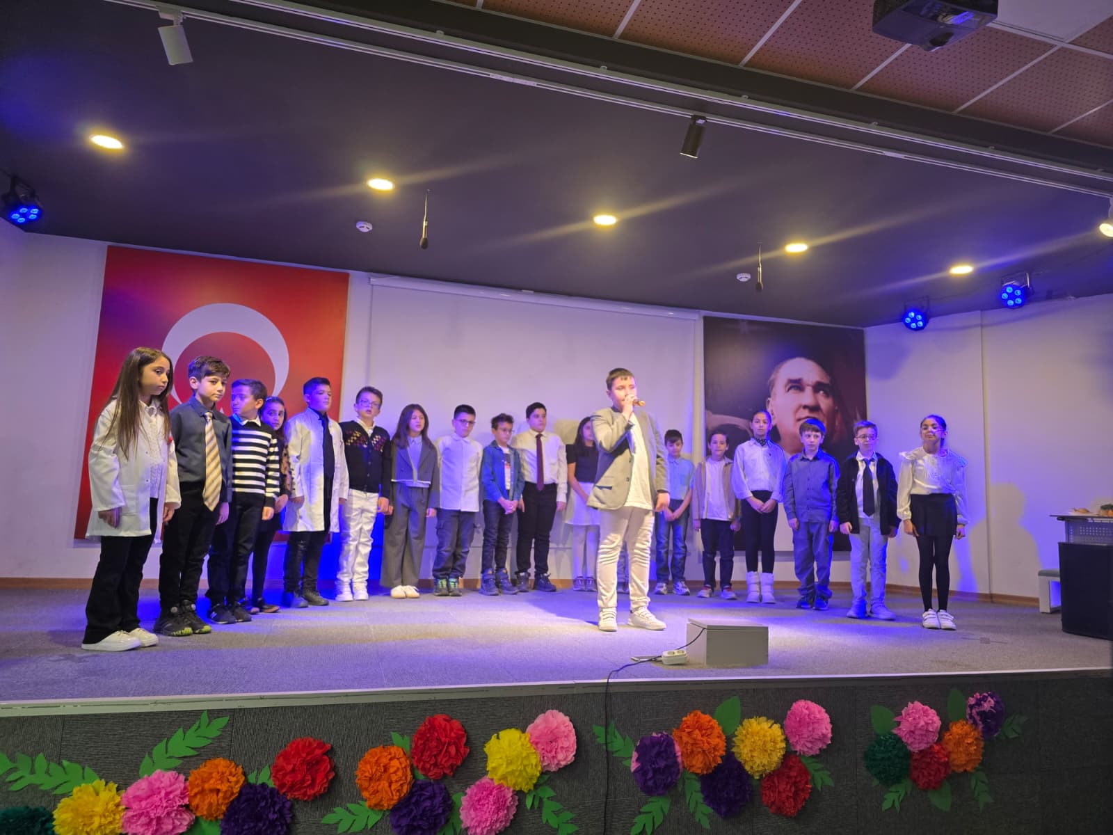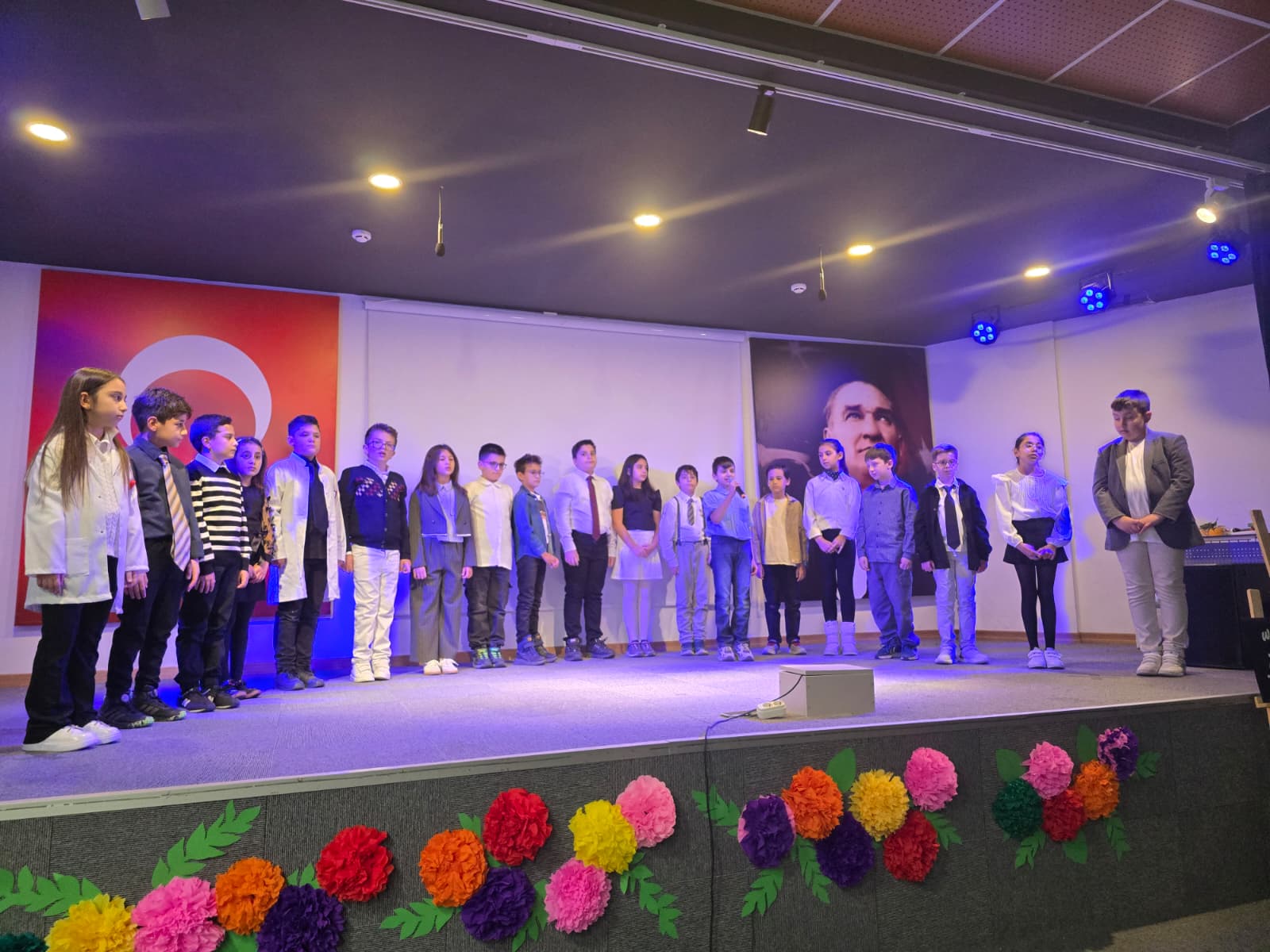 Program, Başöğretmen Atatürk başta olmak üzere aramızdan ayrılmış tüm öğretmenlerimiz adına saygı duruşu ve İstiklal Marşı ile başladı. Açılış konuşmalarını yapan Genel Müdürümüz Hüseyin Çakıcı'nın ardından günün anlam ve önemini öğretmenlerimizden Zeynep Sude Kırcı gerçekleştirdi. Daha sonra sahneye çıkan öğrencilerimiz, öğretmenlerine duydukları sevgiyi ve minneti şiirlerle ifade etti. Oratoryo ve drama performansları izleyenlere unutulmaz anlar yaşatırken dans gösterileri de salona enerji kattı.