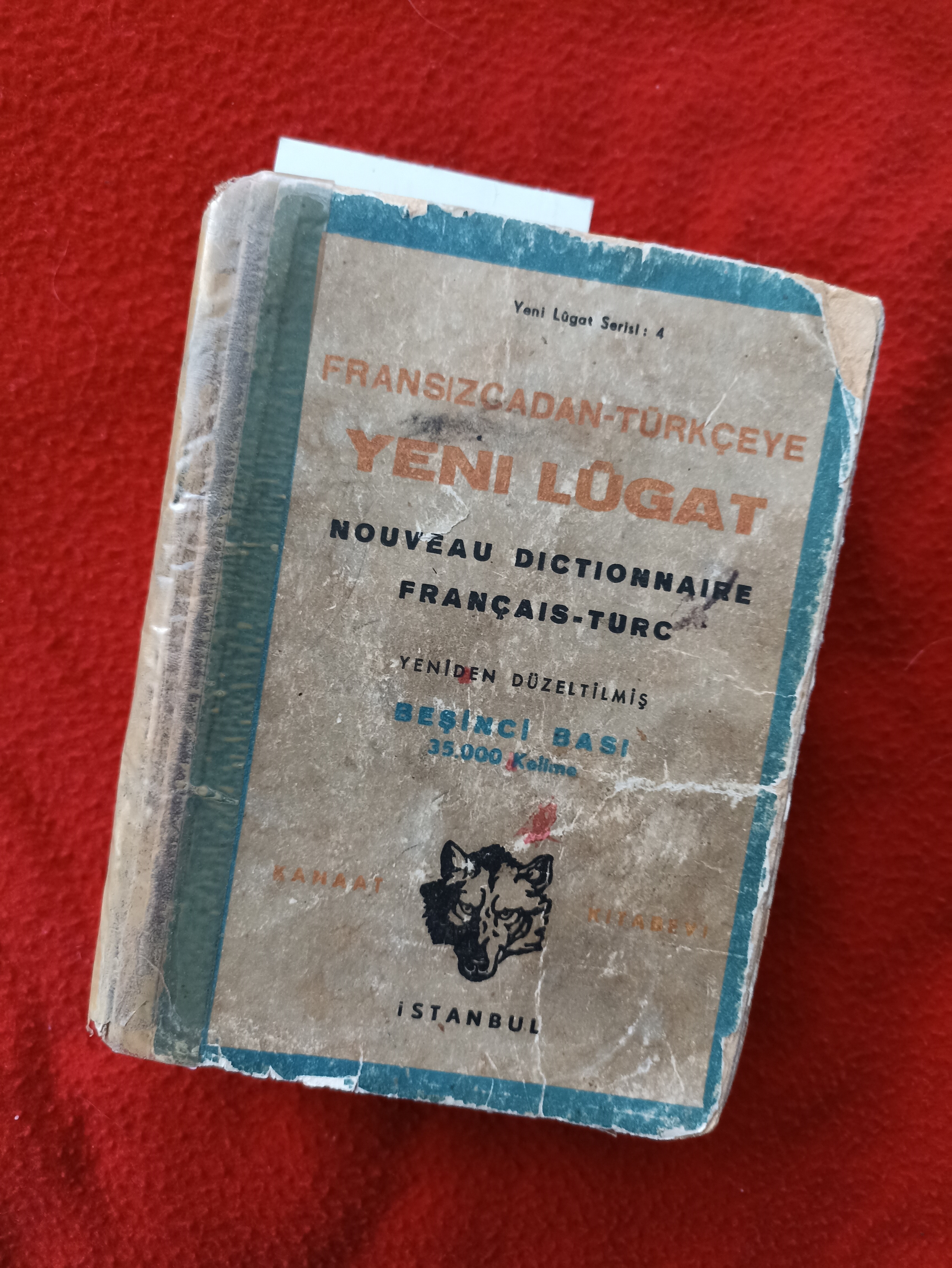 Köşe başında Ahmet Ağa'nın gazete satış yeri vardı. Tahtadan bir baraka, gecekondumsu, birkaç metrekarelik dükkan. Baktım, orada bir sözlük : Fransızcadan Türkçeye YENİ LÜGAT. 35 000 Kelimelik. Yazarı Reşat Nuri Darago. Simgesi Kurt Başı. Kanaat Kitabevi ürünü sert kapaklı orta boy . Kim bıraktıysa. İkinci el, temiz kalmış,pek kullanılmamış. Belediye'de, Valilik' te çalışan kimi teknisyenlerin, mühendislerin Nevşehir'den başka yere atanmaları üzerine, biriktirdikleri kitapları Ahmet Ağa'ya verdiklerini biliyorduk. Fiyatı 5 TL imiş. O parayla 5 gün öğlen yemeği yiyebilirdim. Fakat, buna gereksinim duyuyordum. Aldım, çantama koydum. Sevinçle yola düştüm. Eve yürüyerek varınca 50 dakika sonra, inceledim. Fransızca karşılıkları günümüz Türkçesi değildi. Bir de Osmanlıca-Türkçe sözlük gerekiyordu anlamak için. Olsun, onun da kolayını buldum. Eski sözleri iyi bilen babama sorup öğrenmeğe başladım.