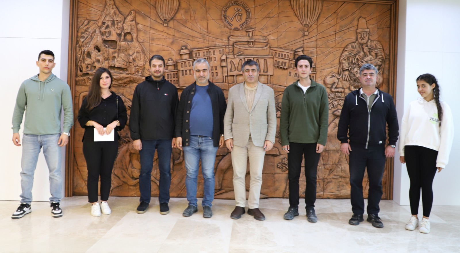 Nevşehir Hacı Bektaş Veli Üniversitesi (NEVÜ) Hacı Bektaş Veli Araştırma ve Uygulama Enstitüsü bünyesinde faaliyetlerini sürdüren Sûfi Kulübü Başkanı Berkay Koçyiğit, Başkan Yardımcısı Neslişah Gökçe ve yönetim kurulu üyeleri, Rektör Prof. Dr. Semih Aktekin’i makamında ziyaret etti.