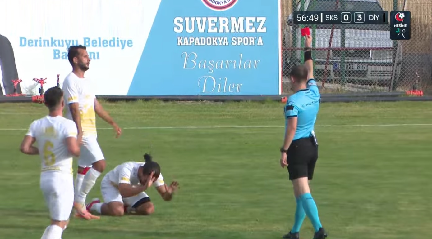 53.Dakika-Suvermez Kapadokyaspor'da Muhammed İbrahim Şahinkaya kırmızı kartla oyun dışı kaldı.