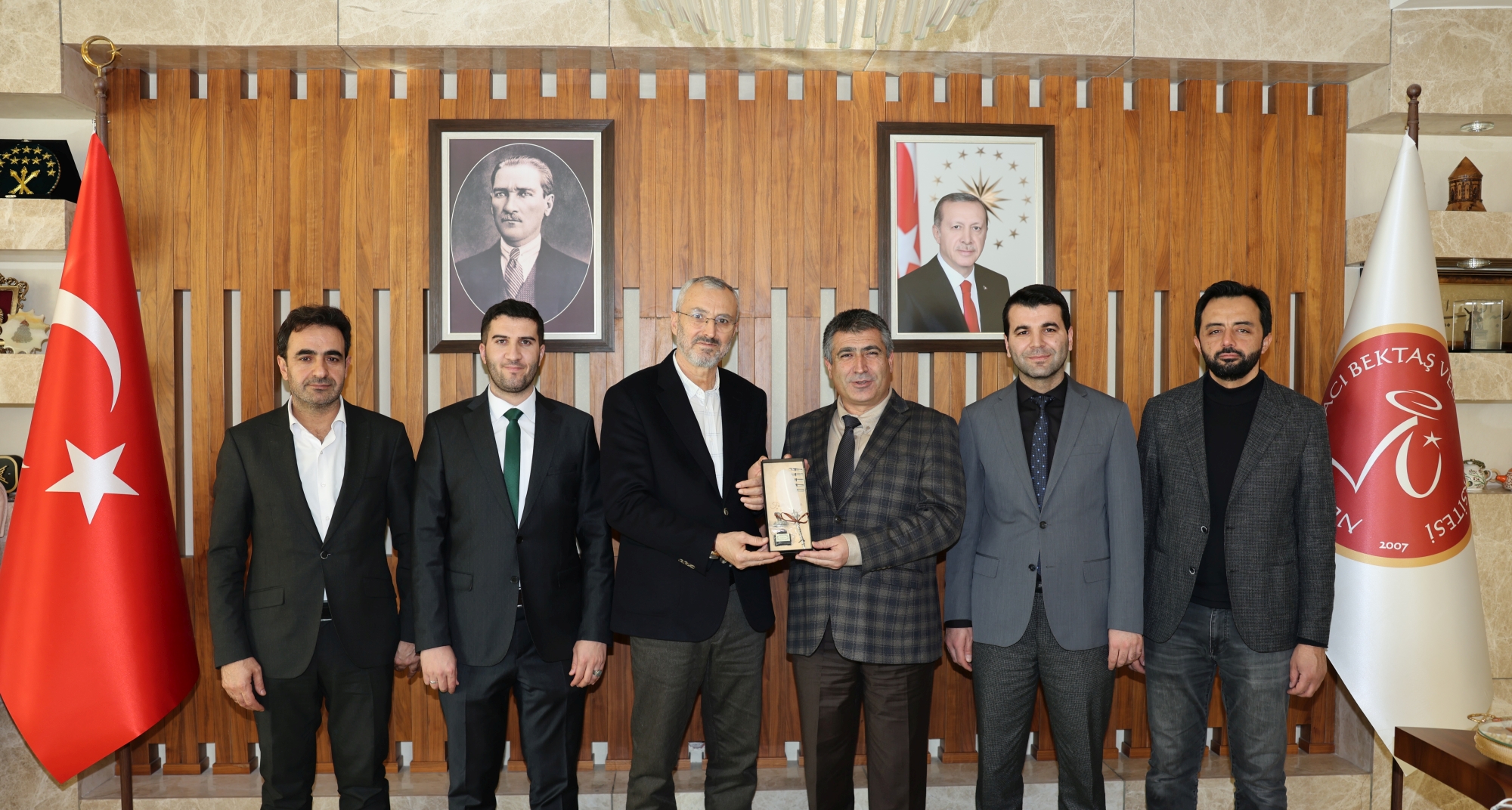 Cihannüma Genel Başkan Yardımcısı ve TARF Düşünce Enstitüsü Direktörü Adnan Çelik, beraberinde TARF Dergisi Yazı İşleri Müdürü Faysal Uzkan, TARF Sosyal Medya Müdürü Ramazan Yılmaz ve VERENEL Yardımlaşma ve Dayanışma Derneği Nevşehir İl Temsilcisi Mustafa Gençtürk ile birlikte Nevşehir Hacı Bektaş Veli Üniversitesi (NEVÜ) Rektörü Prof. Dr. Semih Aktekin’i makamında ziyaret etti.
