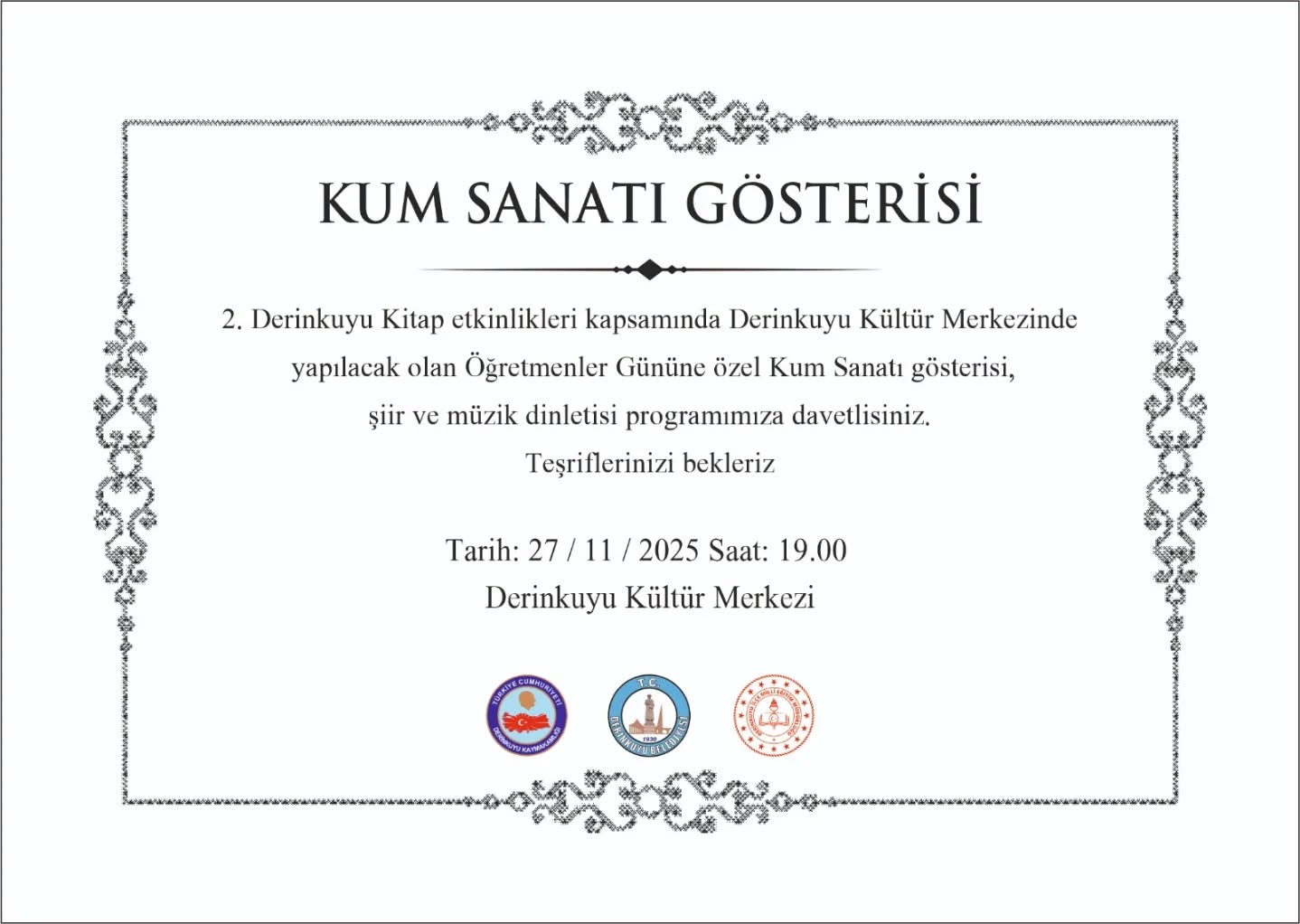 Derinkuyu Belediyesi, tüm sanatseverleri etkinliğe davet ederek şu çağrıda bulundu: