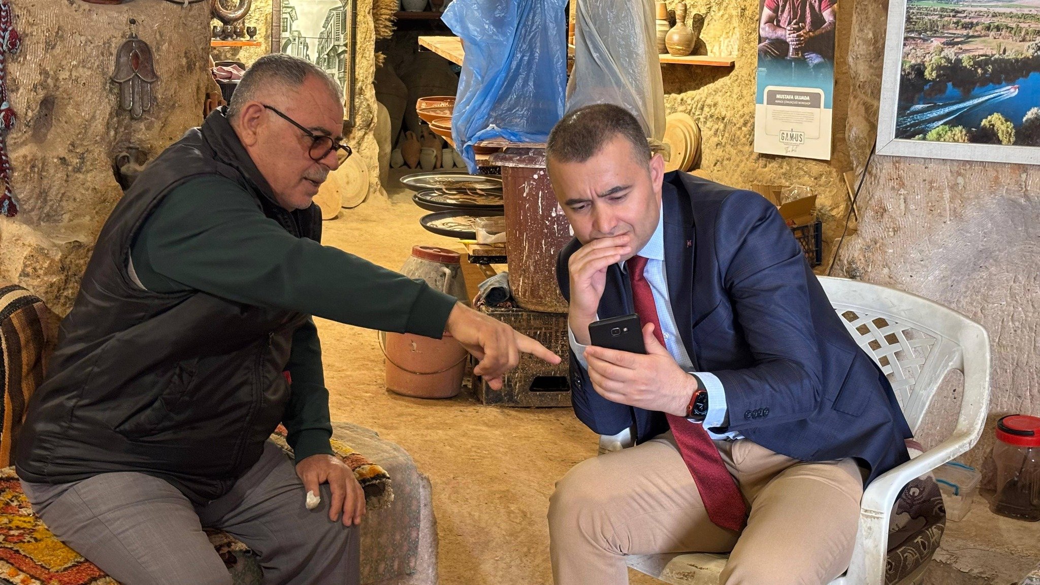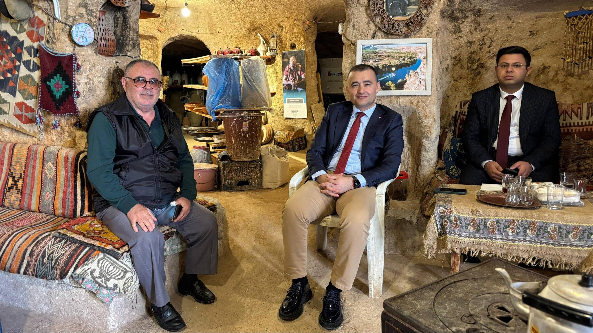 Avanos’un çömlek sanatının yaşayan efsanesi Mehmet Körükçü, Avanos Kaymakamı Osman Bilici ve Kaymakam Refiki Muhammed Burak Kantar’ın ziyaretine ev sahipliği yaptı. Ziyarette, çanak camiasının duayeni olan Mehmet Usta, yılların birikimiyle oluşturduğu eserleri ve Anadolu’nun kadim kültürünü toprakla bütünleştirme sürecini konuklarla paylaştı.