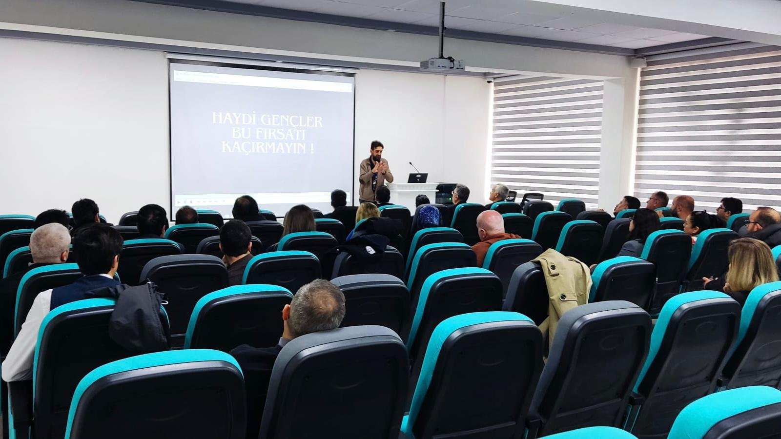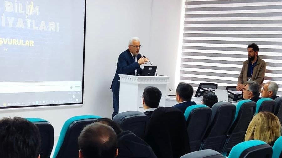 TÜBİTAK 2202-Bilim Olimpiyatları ve TÜBİTAK BİDEP (Bilim İnsanı Destekleme Programları) ile ilgili detaylı bilgi ve içeriklere dair bilgilendirme toplantısı, Müdürlüğümüz AR-GE birimi koordinesinde TÜBİTAK 2202-Bilim Olimpiyatları Elçisi Mükremin İncedağ'ın sunumuyla iki oturum halinde Nevşehir Ölçme Değerlendirme Merkezi konferans salonunda Şube Müdürü Süleyman Bozova, ortaokul ve liselerimizde görev yapan öğretmen ve yöneticilerimizin katılımıyla gerçekleştirildi.