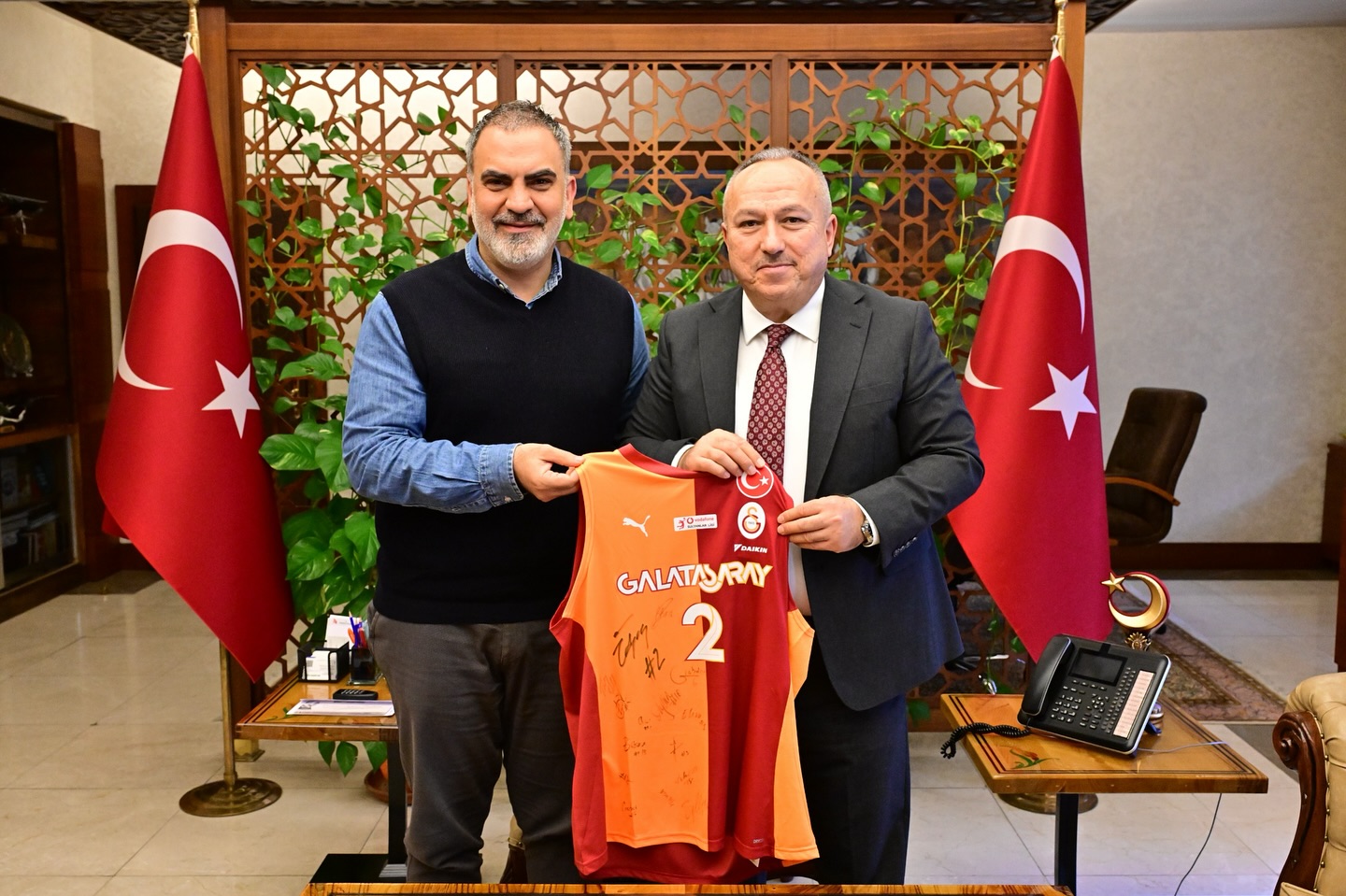 Ziyaretin günün anısına, Yakup Dinler Vali Fidan’a Galatasaray Daikin Kadın Voleybol Takımı’nın kaptanı İlkin Aydın’ın formasını hediye etti.