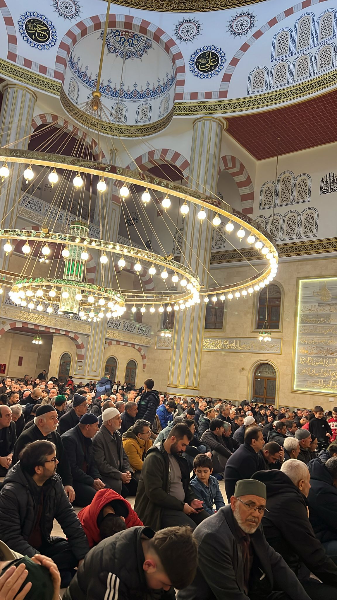 Nevşehir Külliyesi Hacı Süleyman Köybaşı Camii’nde akşam namazını müteakip Mevlid-i Şerif, Kur’an-ı Kerim tilaveti, salâvatlar, tekbirler ve ilahiler okundu. Program, yoğun katılımla manevi bir atmosfer içerisinde gerçekleştirildi.