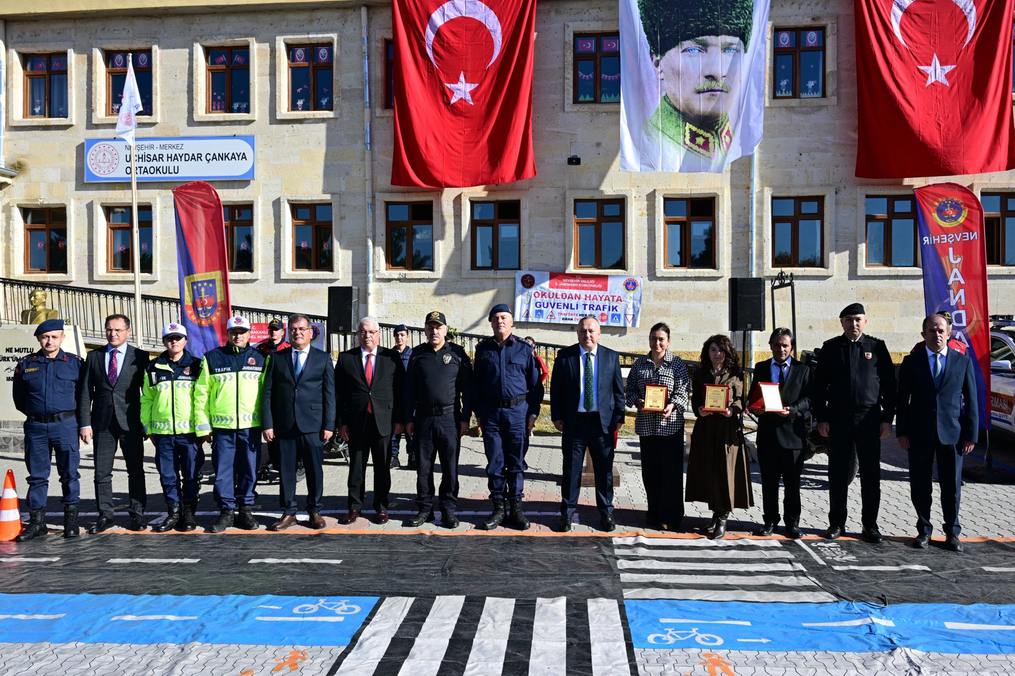 Nevşehir Valisi Ali Fidan, İl Jandarma Komutanlığı ve İl Millî Eğitim Müdürlüğü koordinasyonunda yürütülen “Okuldan Hayata Güvenli Trafik Projesi” kapsamında, Uçhisar Haydar Çankaya İlk ve Ortaokulu’nda düzenlenen trafik güvenliği farkındalık etkinliğine katıldı.