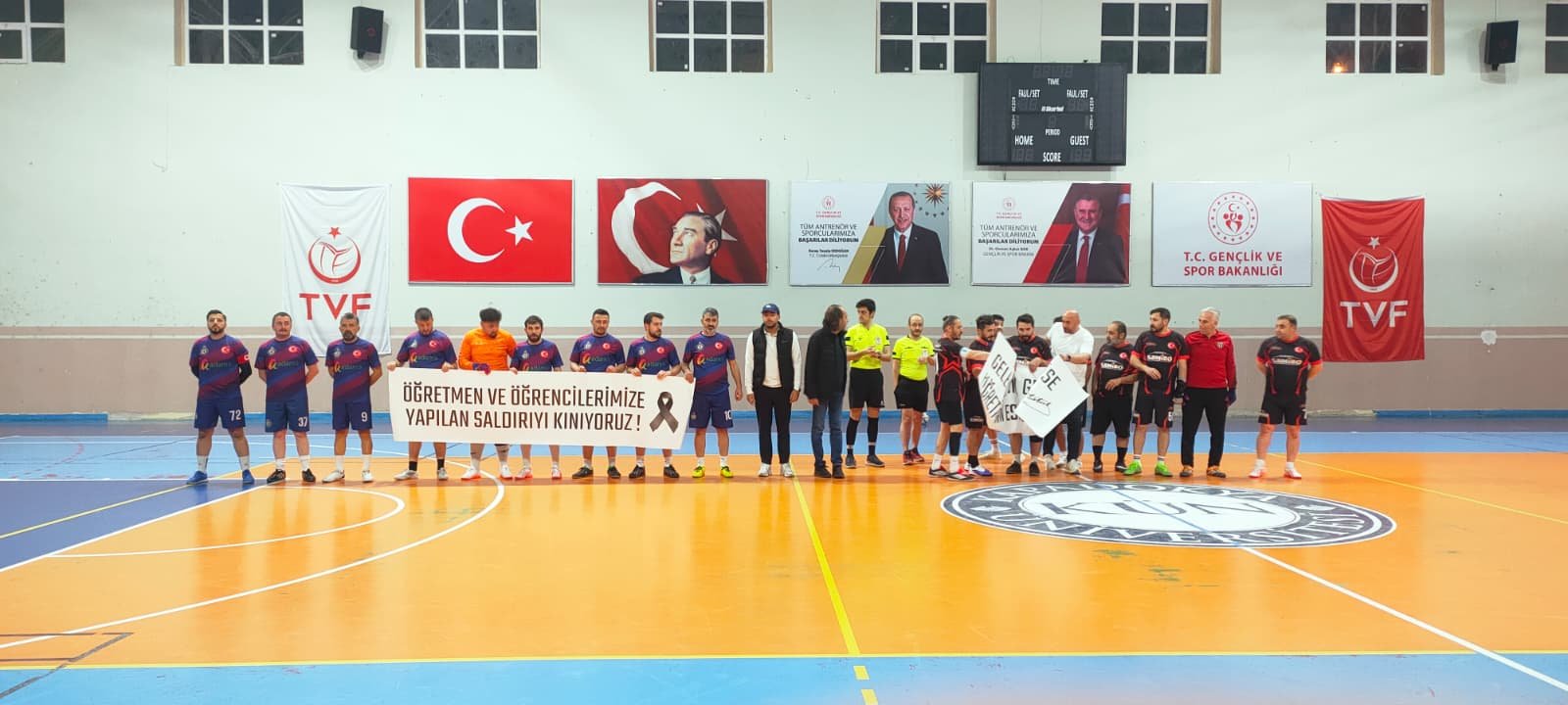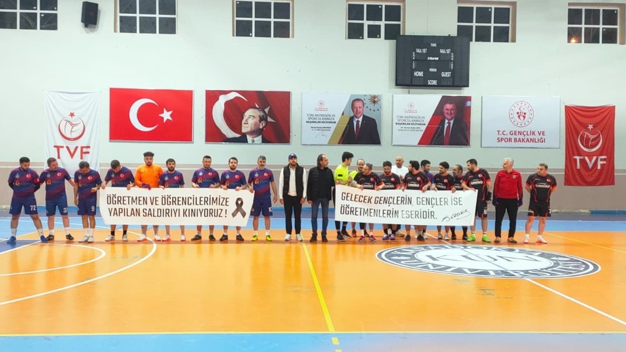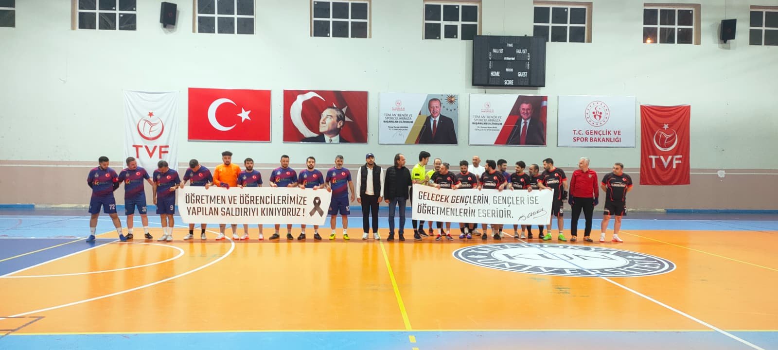 Nevşehir’in Ürgüp ilçesinde düzenlenen 2026 Kaymakamlık Futsal Turnuvası, anlamlı bir mesajla başladı. Turnuvanın yarı final ilk maçında karşı karşıya gelen takımlar, maç öncesinde eğitim camiasına yönelik saldırılara tepki gösterdi.
