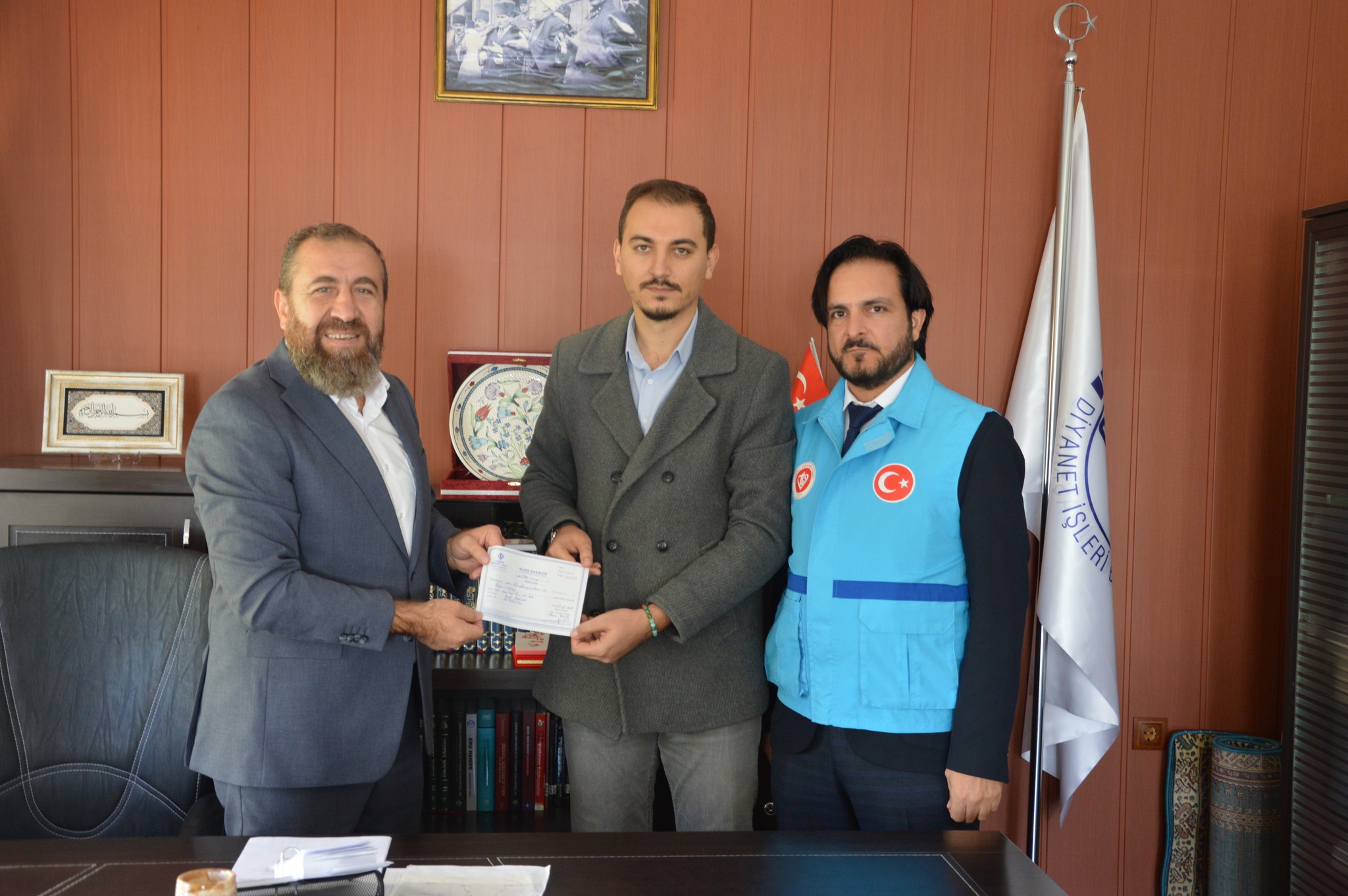 Müdür Yusuf Dursun, yardımları TDV Ürgüp Şube Başkanı ve İlçe Müftüsü Harun Kılıç’a makbuz karşılığı teslim etti.