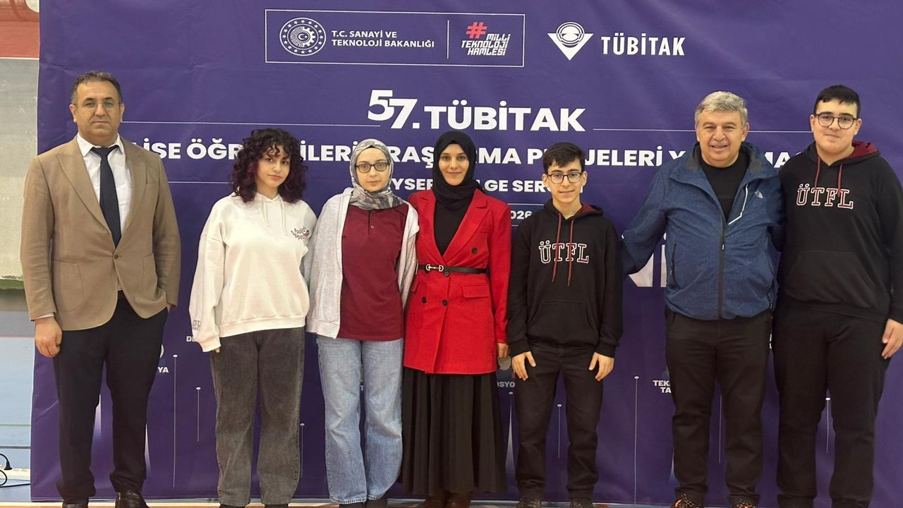Kayseri’de düzenlenen ve Nevşehir, Kırşehir, Aksaray, Sivas, Yozgat, Niğde ve Kayseri illerinden finalistlerin yer aldığı bölge sergisinde öğrencilerimiz projelerini, alanında uzman akademisyenlerden oluşan TÜBİTAK jüri üyelerine başarıyla sundu.