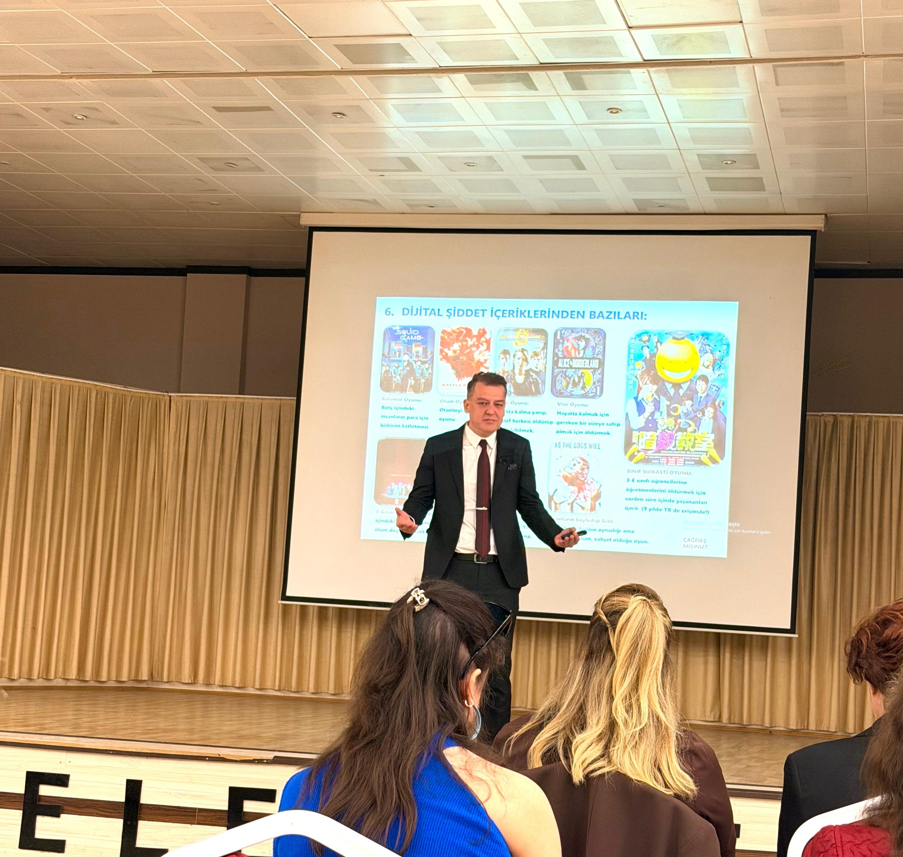 Eğitim Bilimleri Uzmanı, Pedagog Seyit Taylan KAPUCU’nun aynı zamanda Kapadokya Sanayi ve İş Dünyası Federasyonu (SİFED) Genel Sekteri ve Kapadokya Rotary Kulübü 2026-27 Dönem Başkanı ünvanlarıyla konuşmacı olarak katıldığı programda, şiddetin fiziksel, psikolojik ve ekonomik yanları detaylarıyla ele alındı.