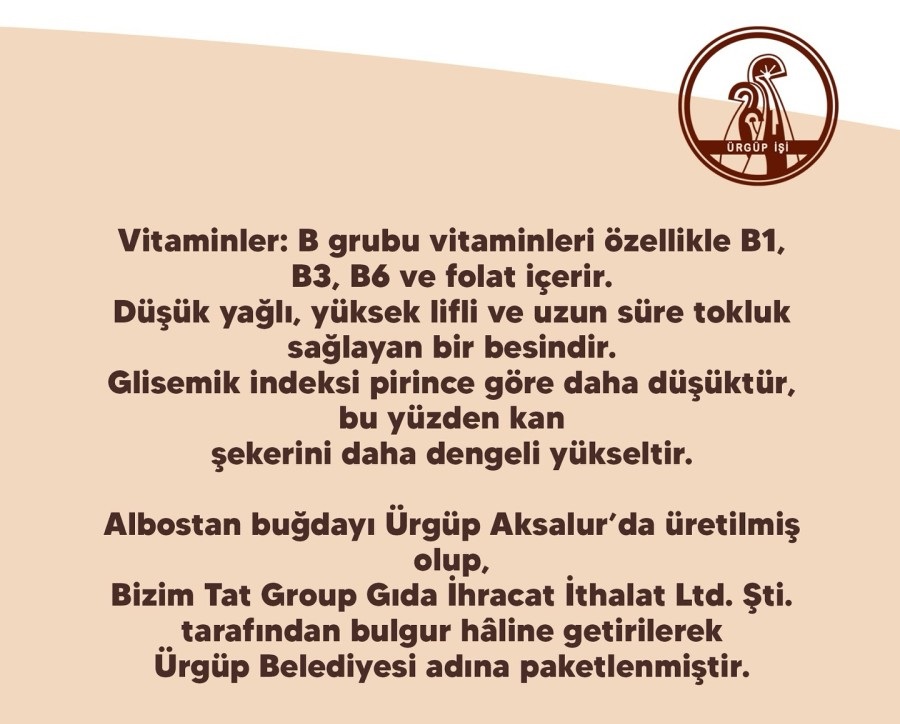 Saflaştırılan ürünün daha geniş alanlarda ekilmesi ve bölge ekonomisine katkı sağlaması amacıyla bir bakliyat firmasıyla üretim ve satış sözleşmesi imzalandı. Bugün itibarıyla, elde edilen ürünlerden üretilen pilavlık ve köftelik Albostan bulguru, Kent Lokali ve Ürgüp Erhan Ayata At Sergi Salonu’ndaki satış noktalarında 1 kilogramı 100 TL fiyatla satışa sunuldu. Yarma satışlarının ise kısa süre içinde başlayacağı bildirildi.