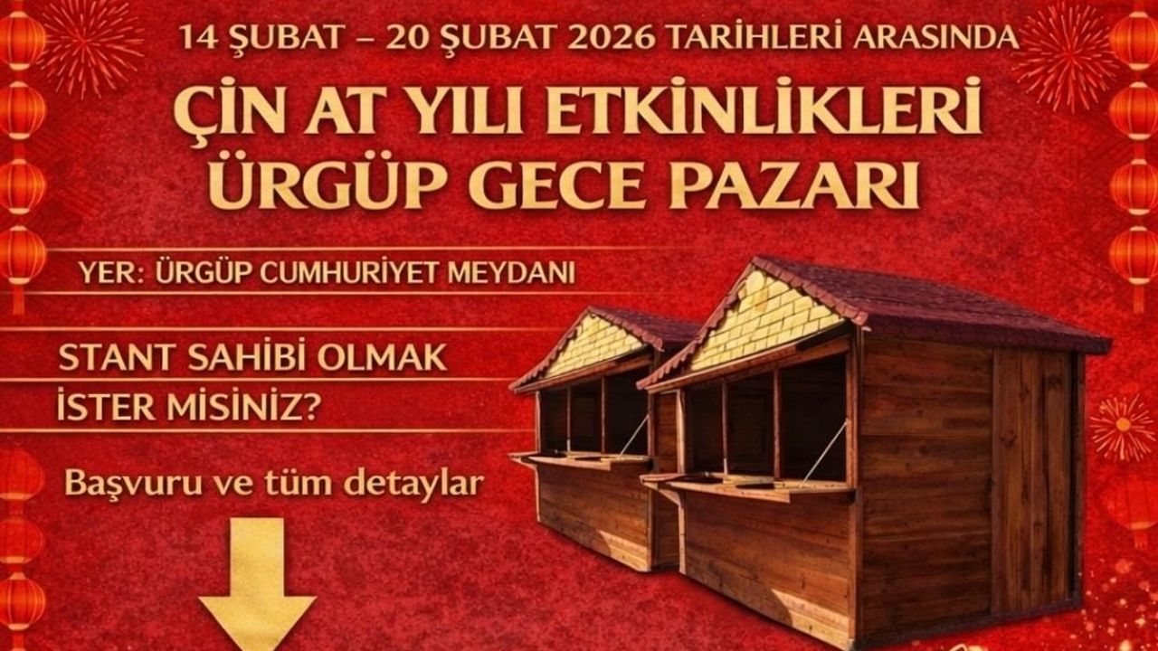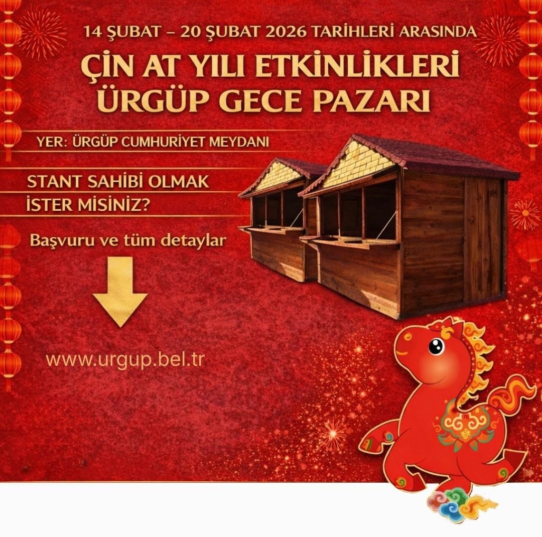 Kapadokya Alan Başkanlığı ile Ürgüp Belediyesi iş birliğinde düzenlenecek “Çin At Yılı Etkinlikleri – Gece Pazarı”, 14–20 Şubat tarihleri arasında Ürgüp Cumhuriyet Meydanı’nda ziyaretçilerini ağırlayacak. Kültürel etkileşimi artırmayı ve bölge turizmine farklı bir renk katmayı amaçlayan etkinlik, yerli ve yabancı misafirleri bir araya getirecek.