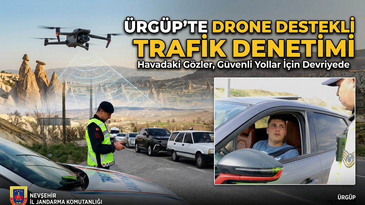 Nevşehir’in Ürgüp ilçesinde trafik güvenliğini artırmak amacıyla drone destekli denetim gerçekleştirildi. Ürgüp İlçe Jandarma Komutanlığı Trafik Jandarması timleri tarafından yapılan uygulamada, sürücülerin kural ihlalleri havadan tespit edildi.