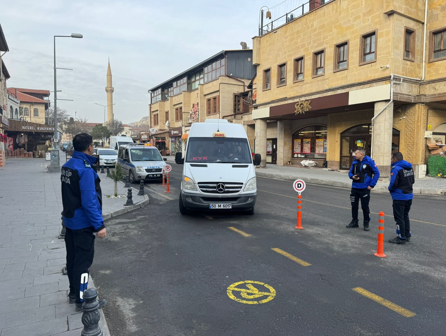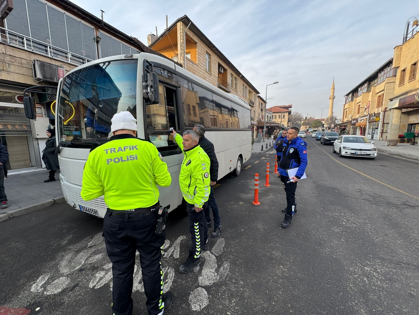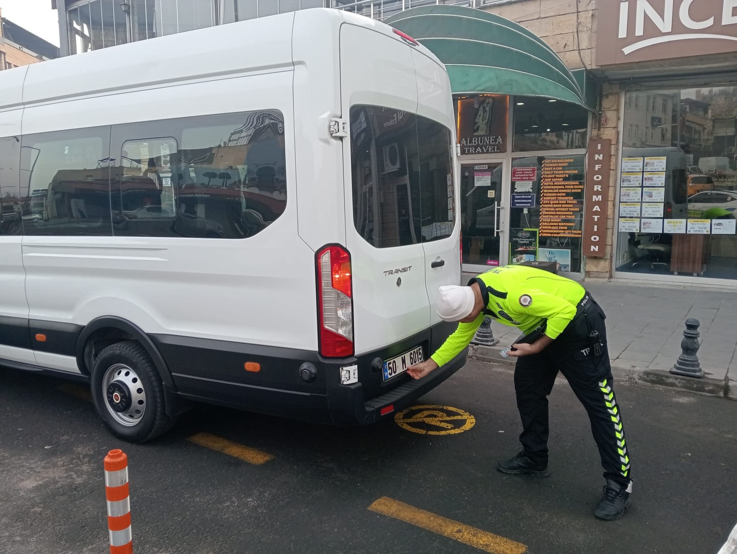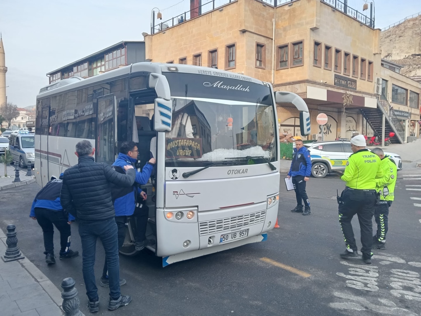 Ürgüp İlçe Emniyet Müdürlüğü Trafik Ekipleri ile Ürgüp Belediyesi Zabıta Müdürlüğü’ne bağlı ekipler, koordineli şekilde yürüttükleri denetimlerde toplu taşıma araçlarını tek tek kontrol etti.