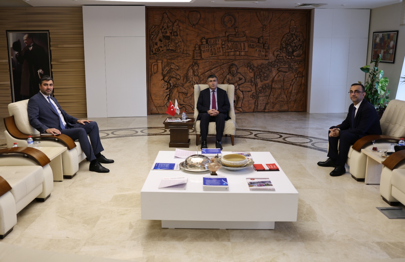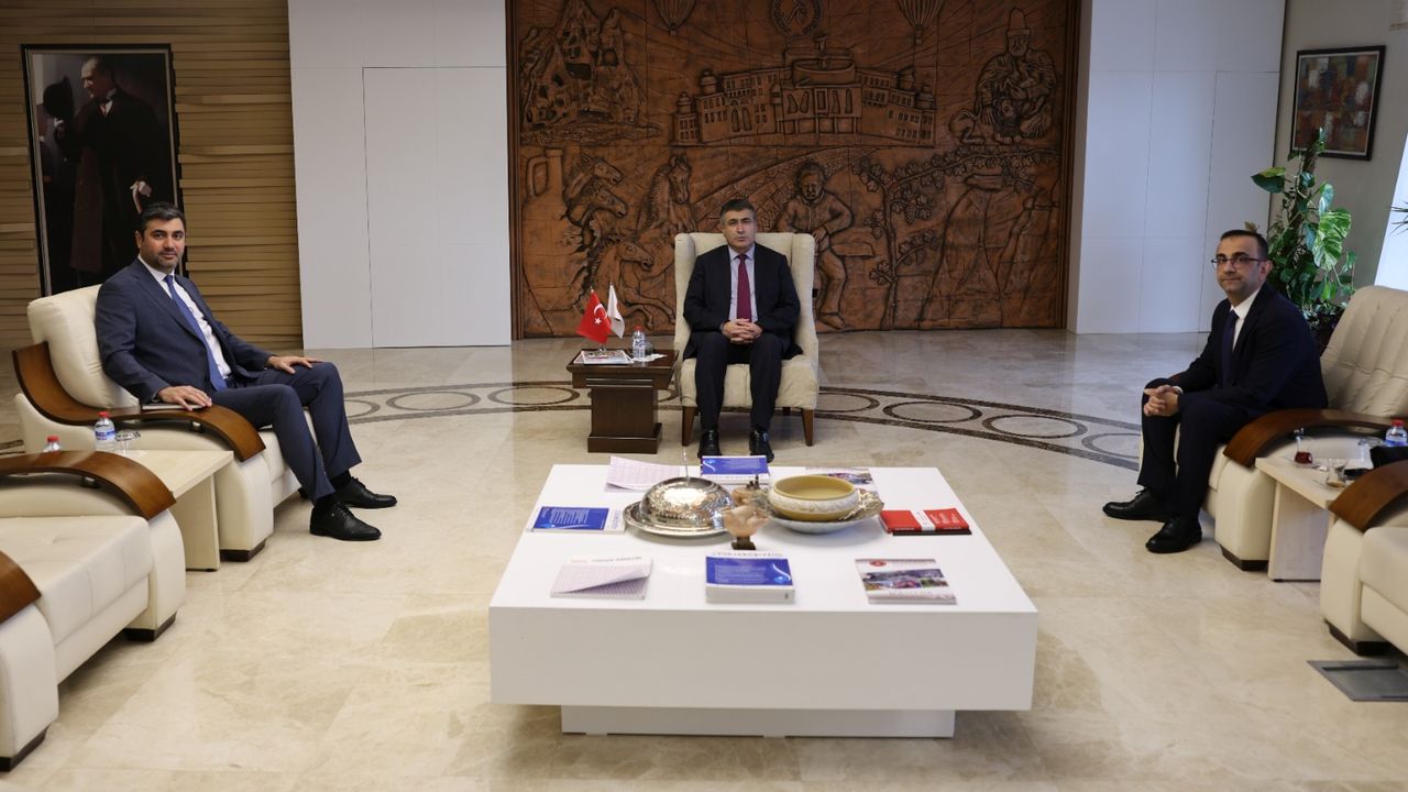 Vakıf Katılım Bankası Nevşehir Şube Müdürü Emre Köybaşı ve Şube Müdür Yardımcısı İlkay Turan, Nevşehir Hacı Bektaş Veli Üniversitesi (NEVÜ) Rektörü Prof. Dr. Semih Aktekin’i makamında ziyaret etti.