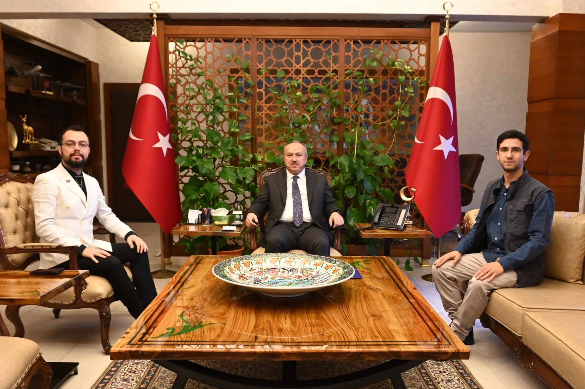 Vali Ali Fidan, Çukurova Üniversitesi Meslek Yüksekokulu Müdür Yardımcısı ve Radyo Televizyon Sinema Programcılığı Bölümü Öğretim Üyesi Batuhan Kalaycı ile Anadolu Ajansı (AA) Nevşehir Muhabiri Ramazan Kösedağ’ı da makamında kabul etti.