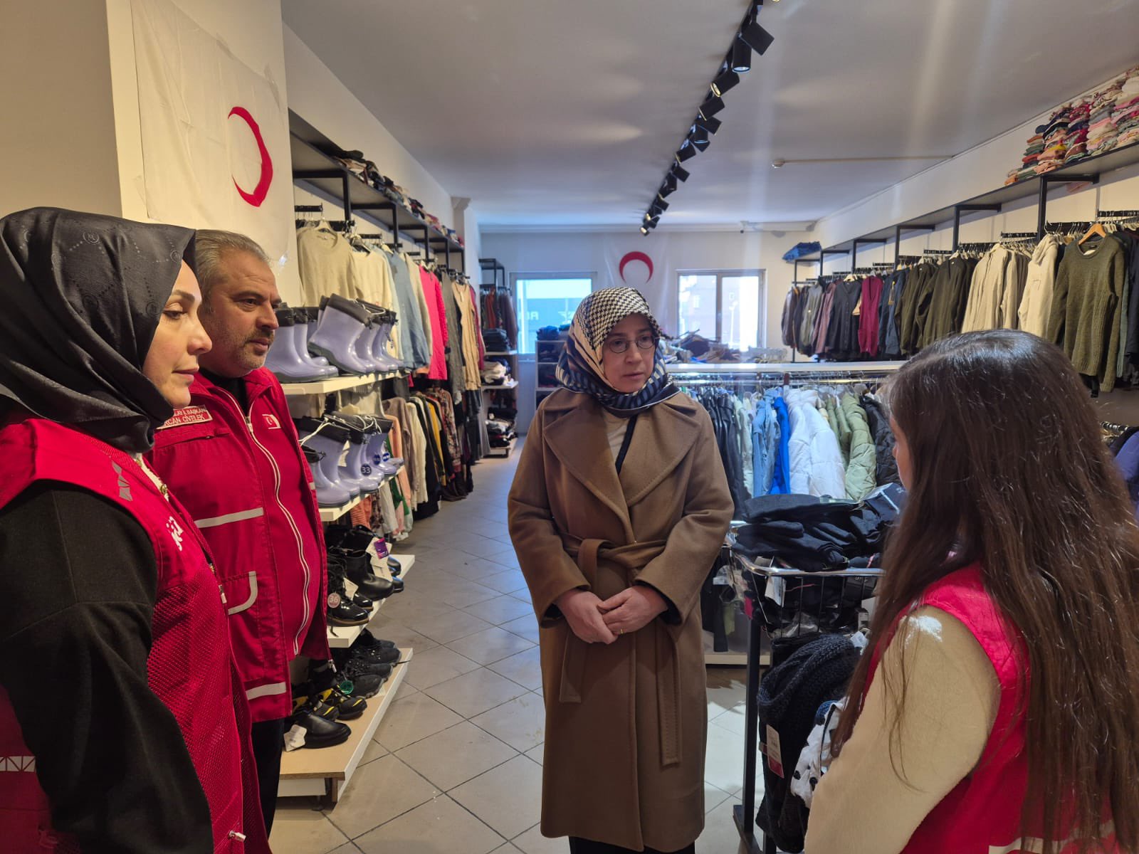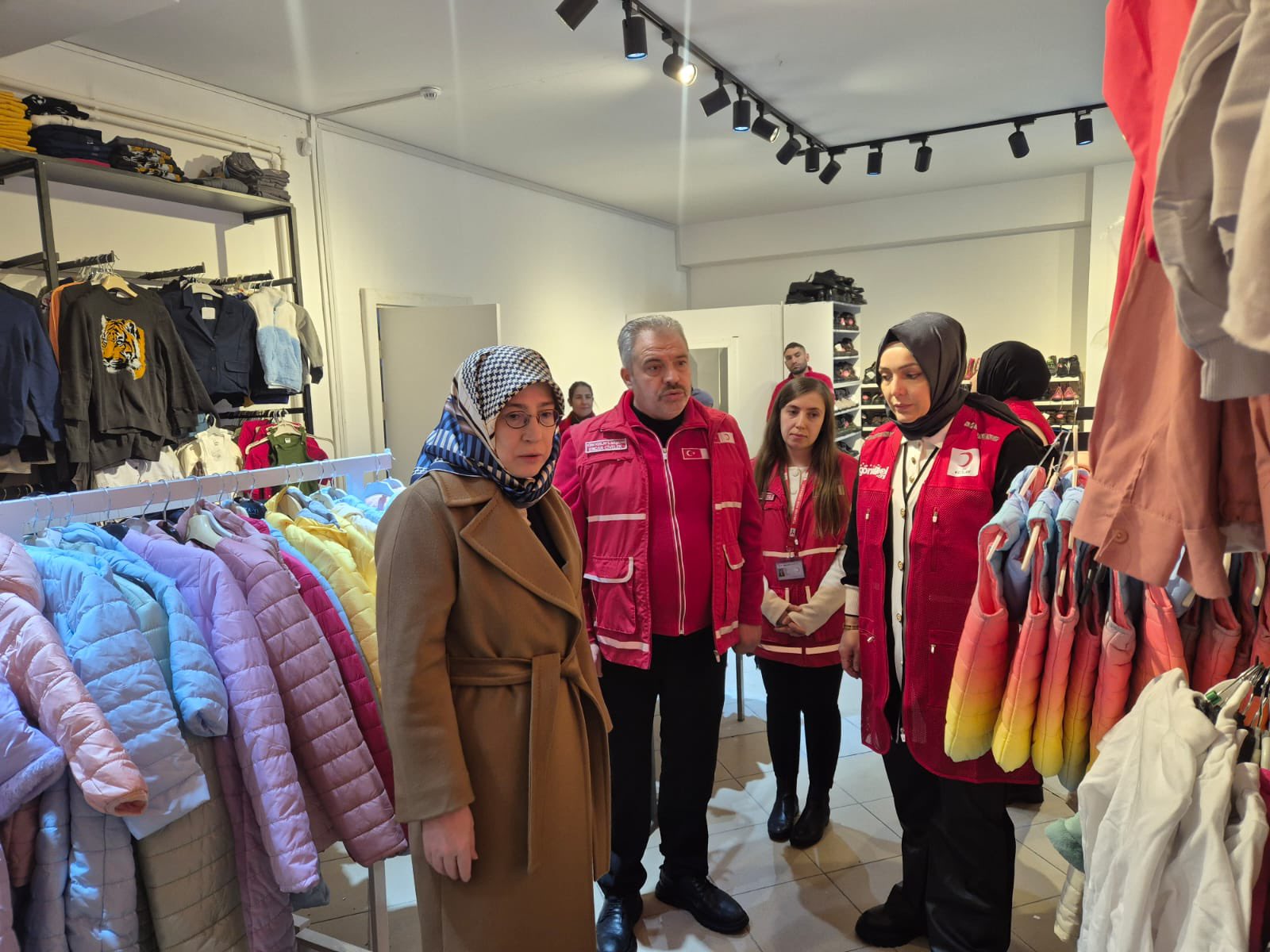 Prof. Dr. Fatma Fidan Hanımefendi ayrıca, ihtiyaç sahibi vatandaşlara ücretsiz giyim ve kıyafet temini sağlanan Türk Kızılay Butik Mağazası’nı ziyaret ederek yürütülen sosyal destek faaliyetleri hakkında bilgi aldı.